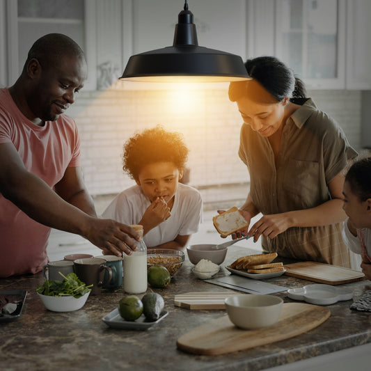 • Match your lighting to the kitchen’s overall design, whether modern, rustic, or industrial.