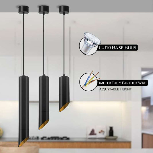 Modern Black & Gold Long Tube Aluminium Ceiling Cylindrical LED Pendant Light~4591