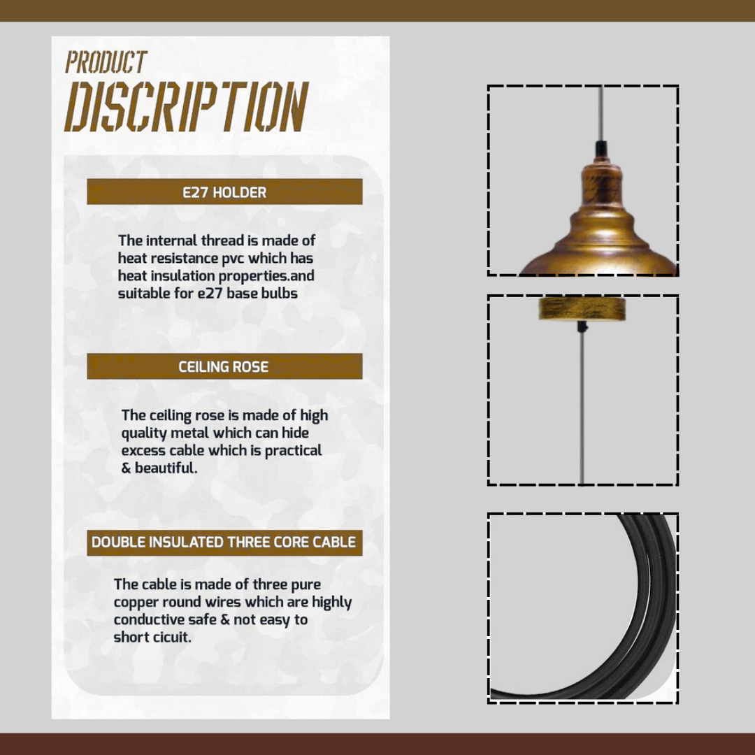 • 1x 95cm adjustable flex with E27 Edison screw attached to the Lampshade (The Bulb is not included)