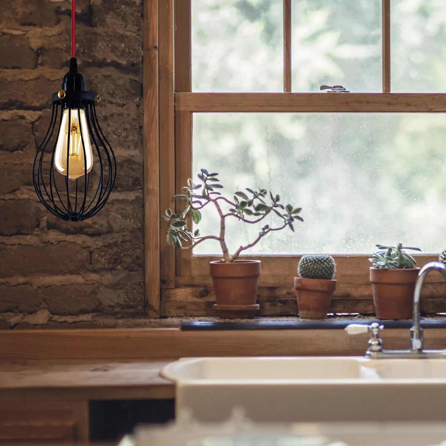 - The wire cage adds a unique and stylish touch to the design, while also providing protection for the bulb.