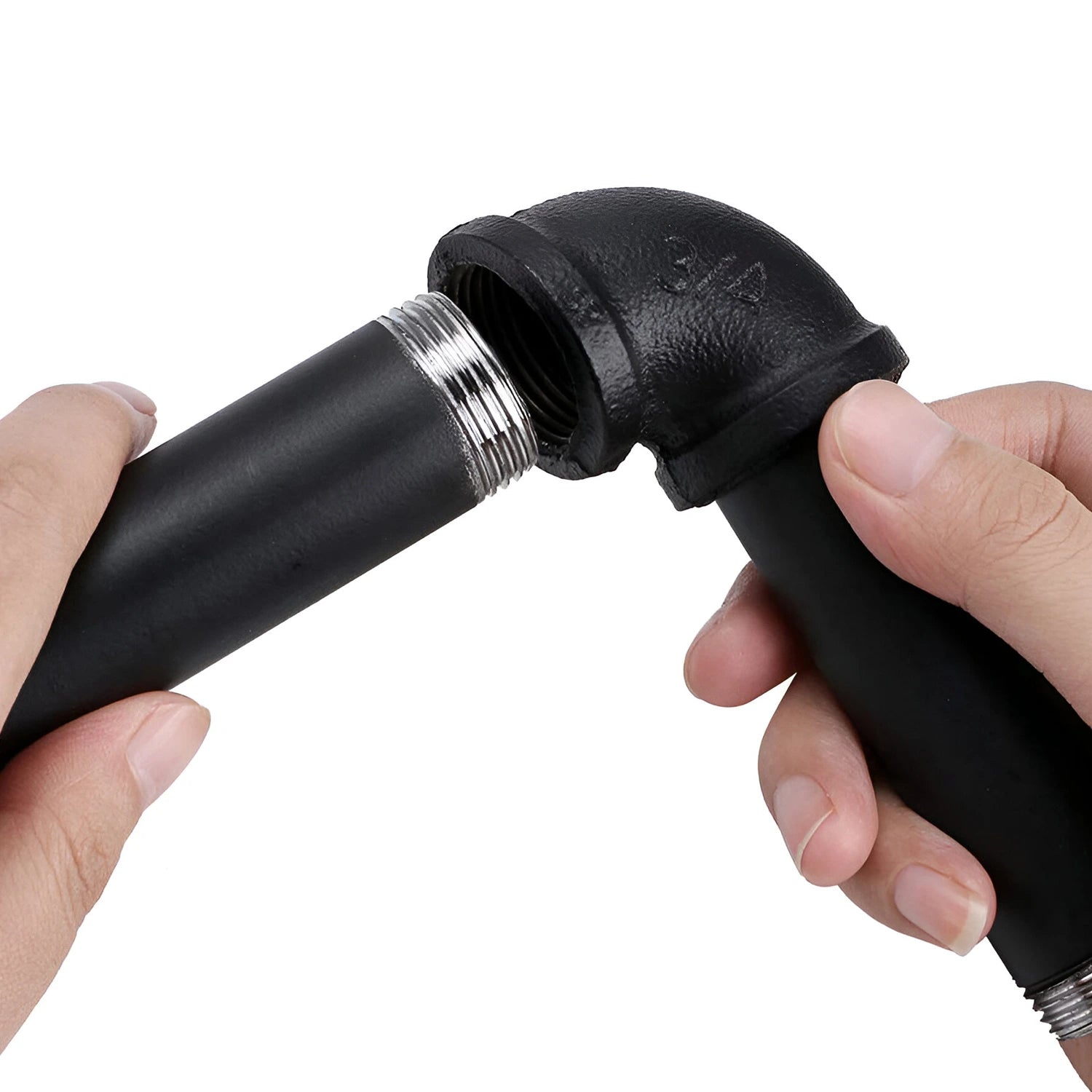 - El accesorio de tubería de curvatura de 90 grados de hierro maleable negro de 3/4 BSP es la manera perfecta de crear una lámpara o un mueble personalizado para su hogar.