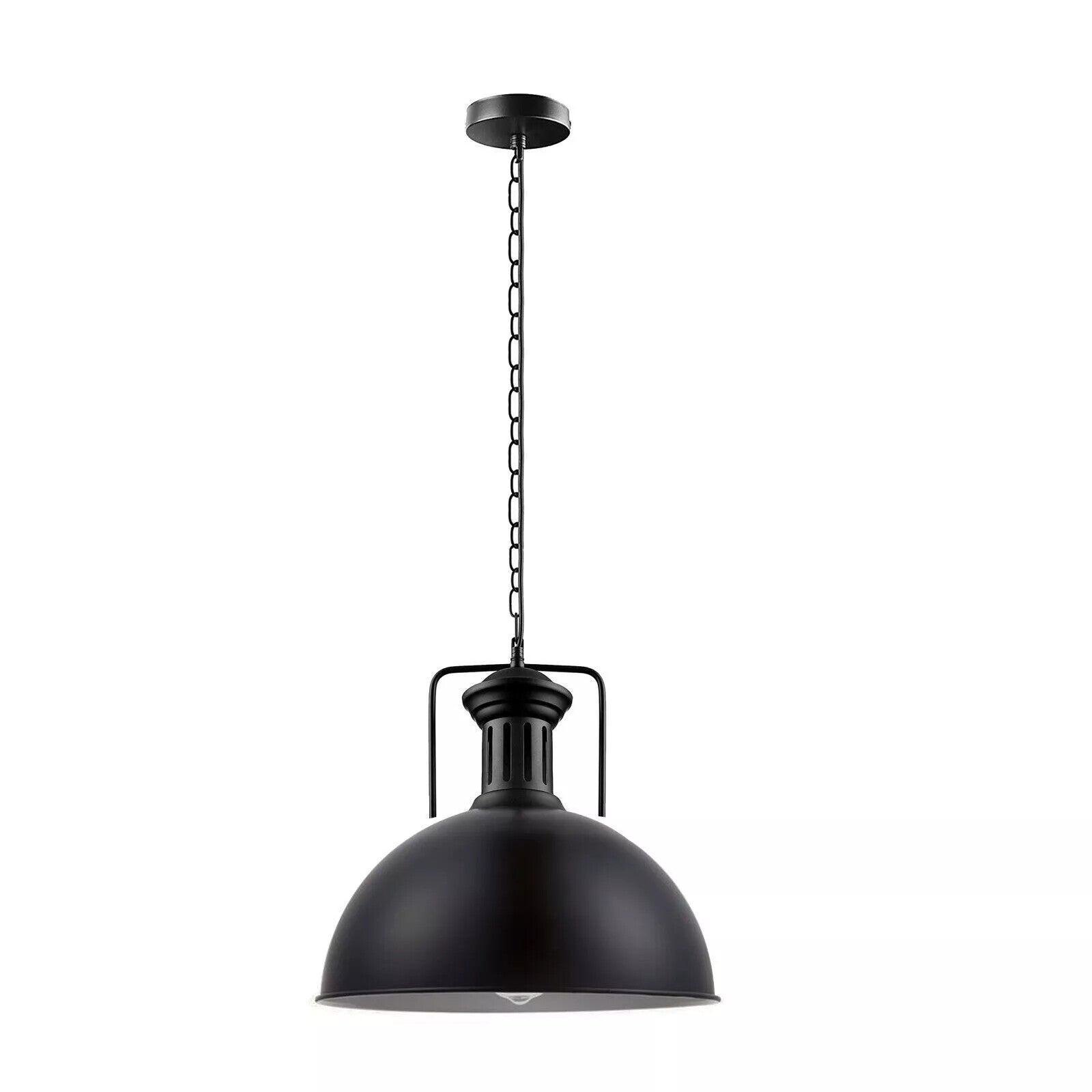 Crafted from high-quality metal with a sleek, corrosion-resistant black finish, this lamp shade is built for longevity. The classic dome shape not only adds a retro touch but also efficiently directs light downward, making it an excellent choice for task lighting over surfaces. The inclusion of a rugged matching chain adds to its authentic industrial character.