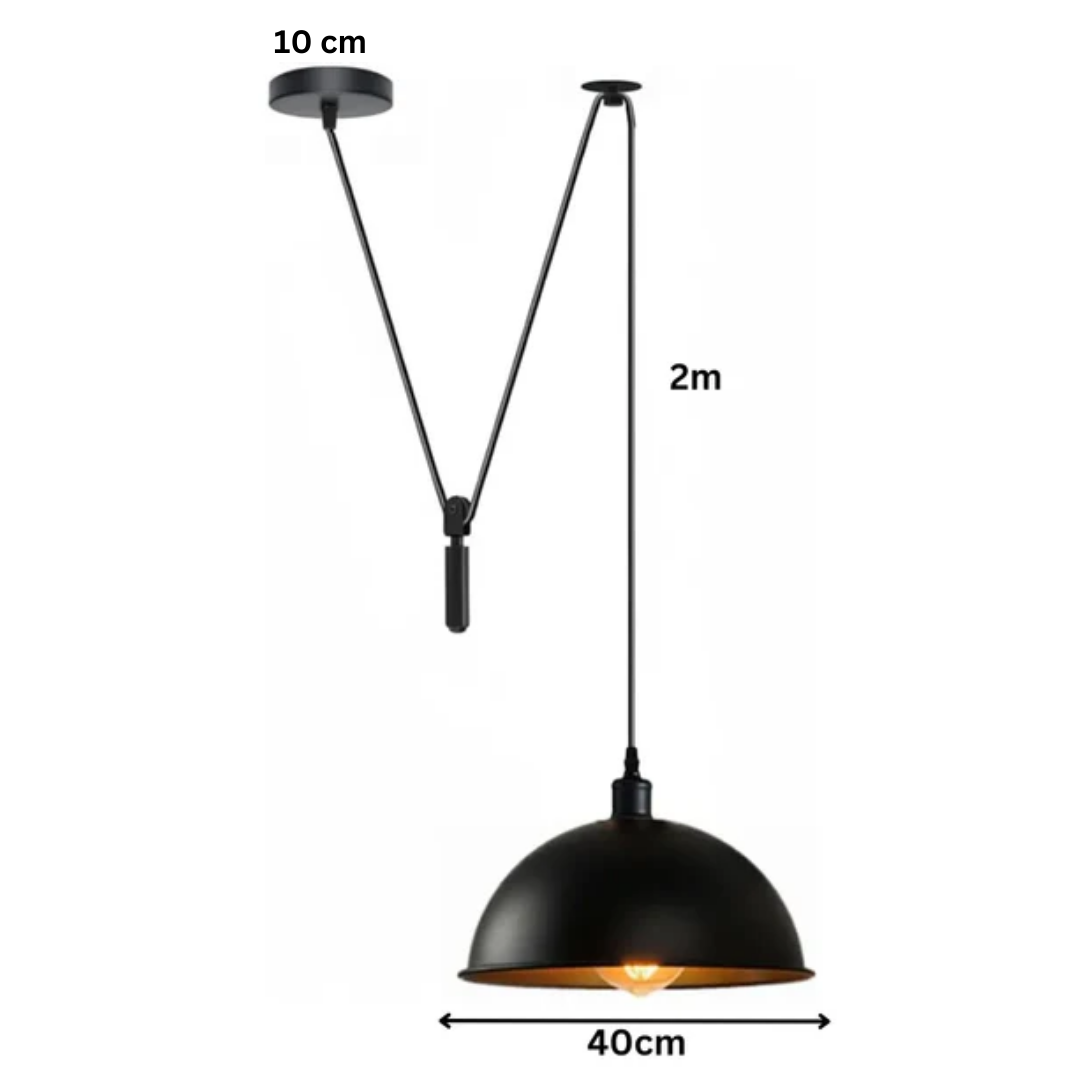 Bring the perfect blend of vintage mechanics and modern style to your home with the Industrial Rise and Fall Pendant Light. This 40cm black dome fixture features a fully functional pulley system, making it an ideal choice for dynamic lighting in kitchens, dining areas, and workspaces.