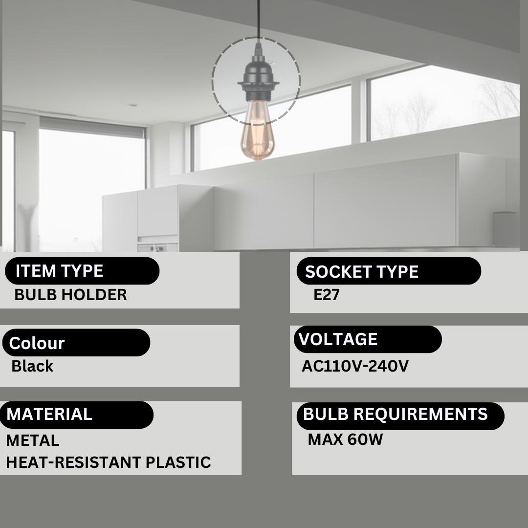 • El casquillo E27 con tubo roscado presenta un diseño clásico que se adapta a distintas formas de bombillas, colores y estilos de interiores.