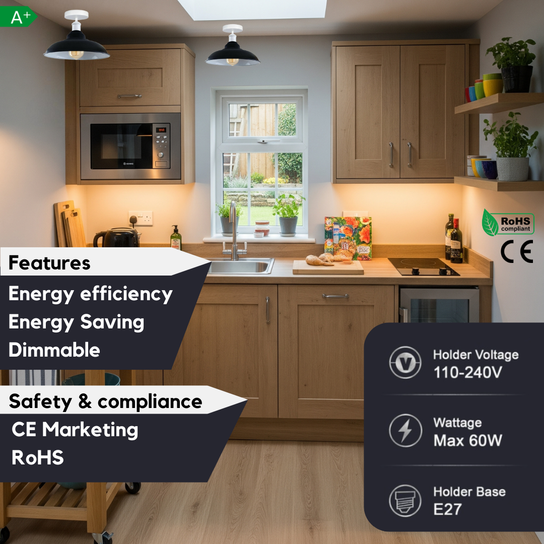 - Looks fantastic with a vintage-style bulb to showcase its beauty and warmth.