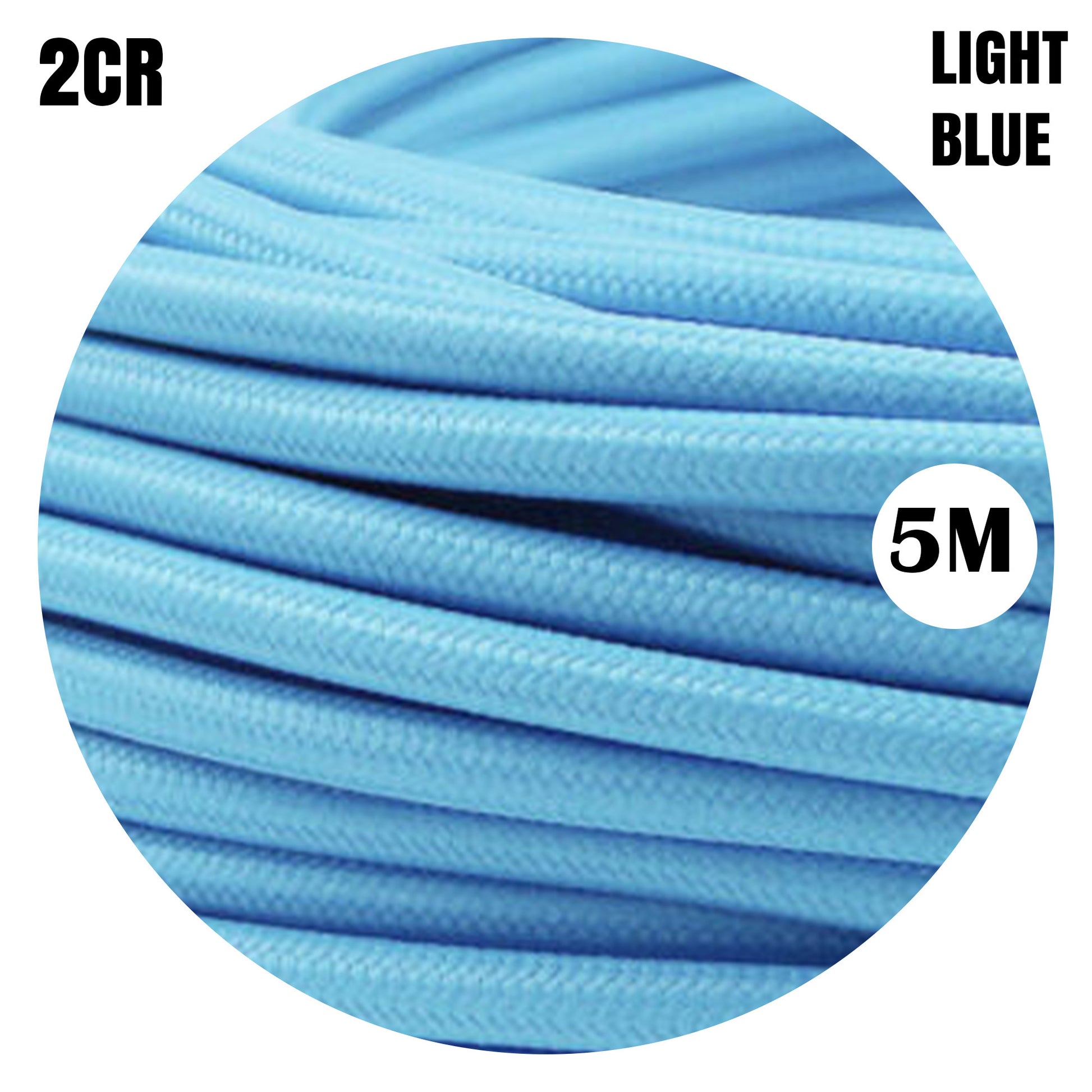 Cable eléctrico redondo flexible de tela azul claro vintage de 1 m, 5 m y 10 m, ~3026