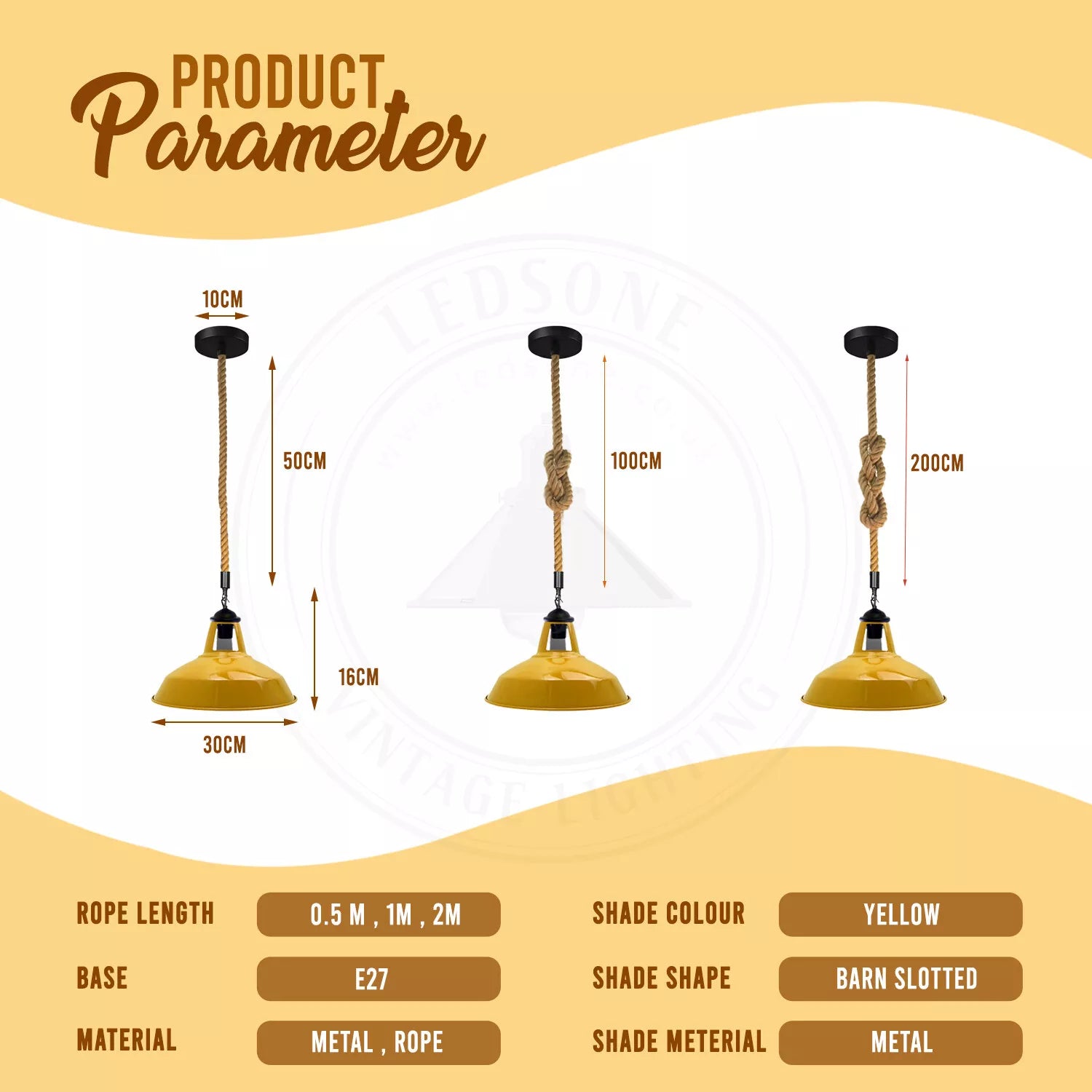 Lámpara colgante de techo de cuerda de cáñamo de metal industrial de 2 m ~5343