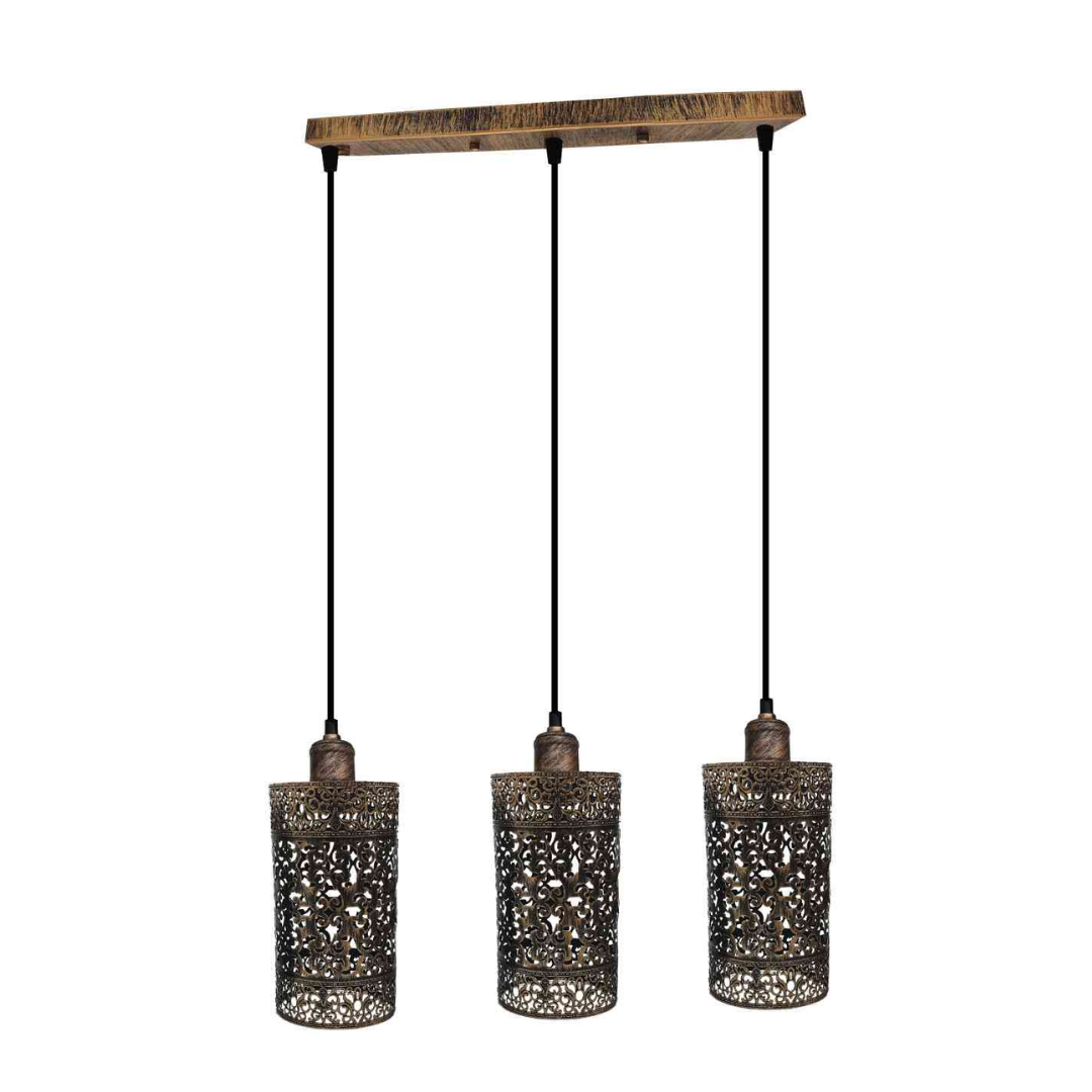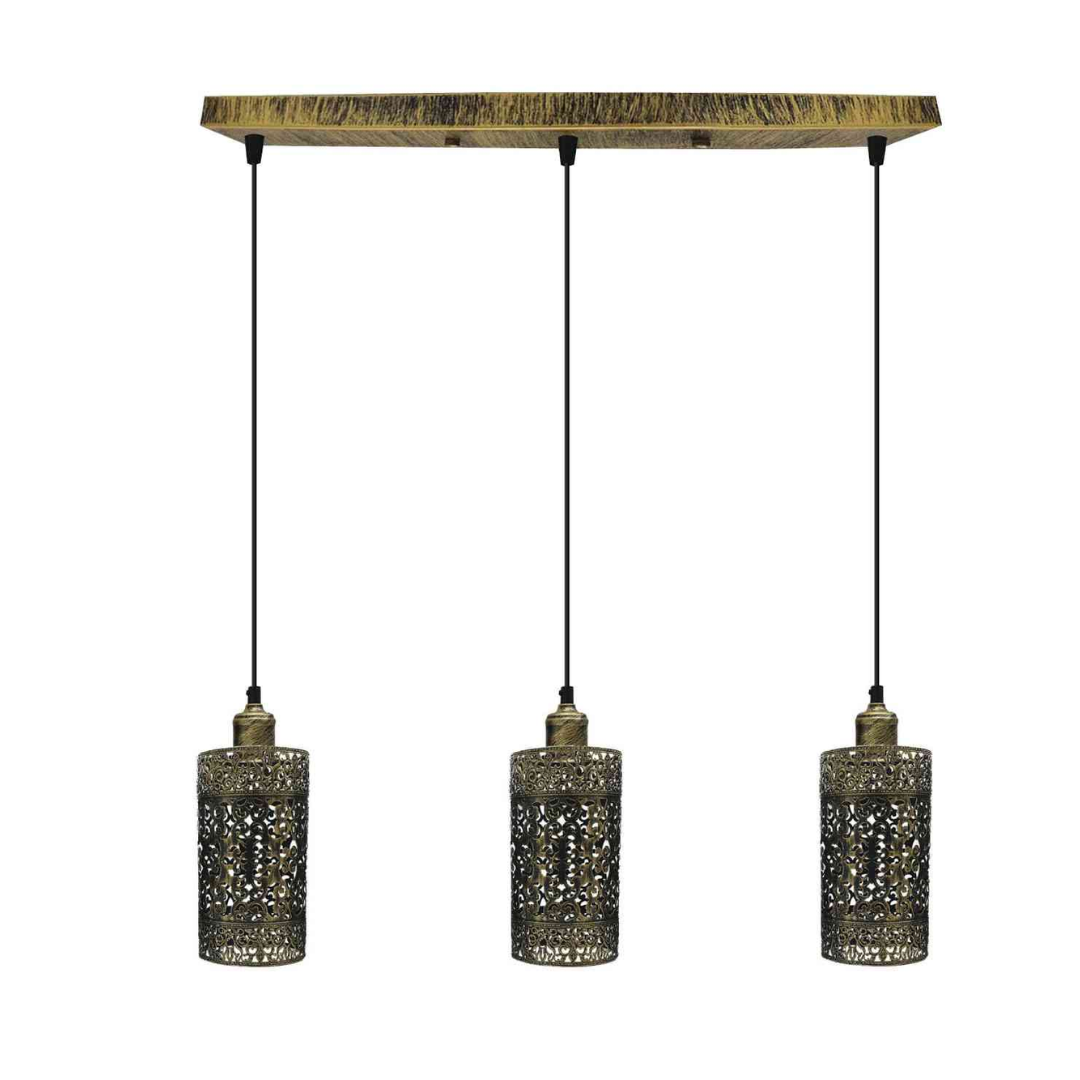 Lámpara colgante retro industrial vintage de 3 vías, cilindro de tambor rectangular, base de techo en varios colores, acabado cepillado ~4022