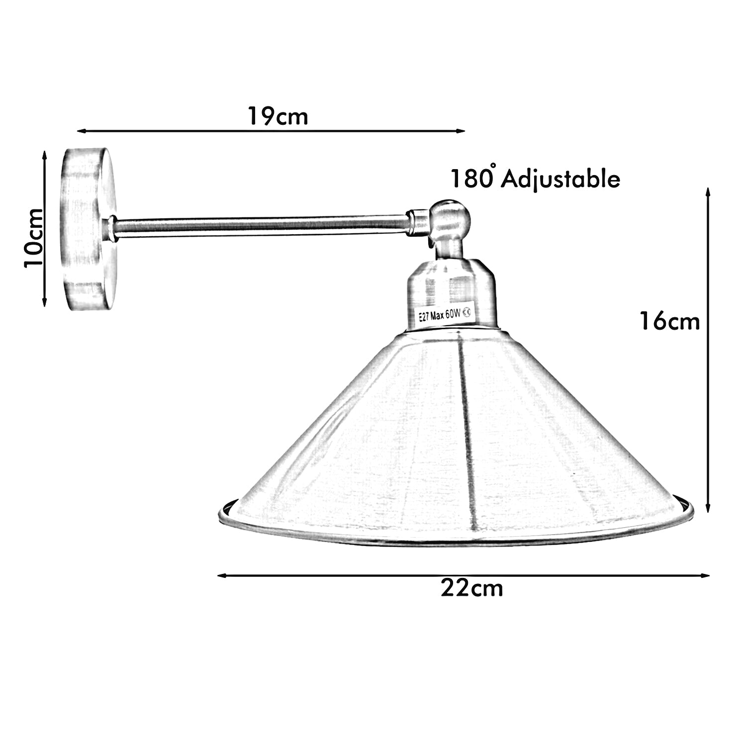 - La lámpara de pared de brazo corto cuenta con un brazo ajustable a 180° y una pantalla plana, lo que permite un uso versátil y una instalación sencilla.