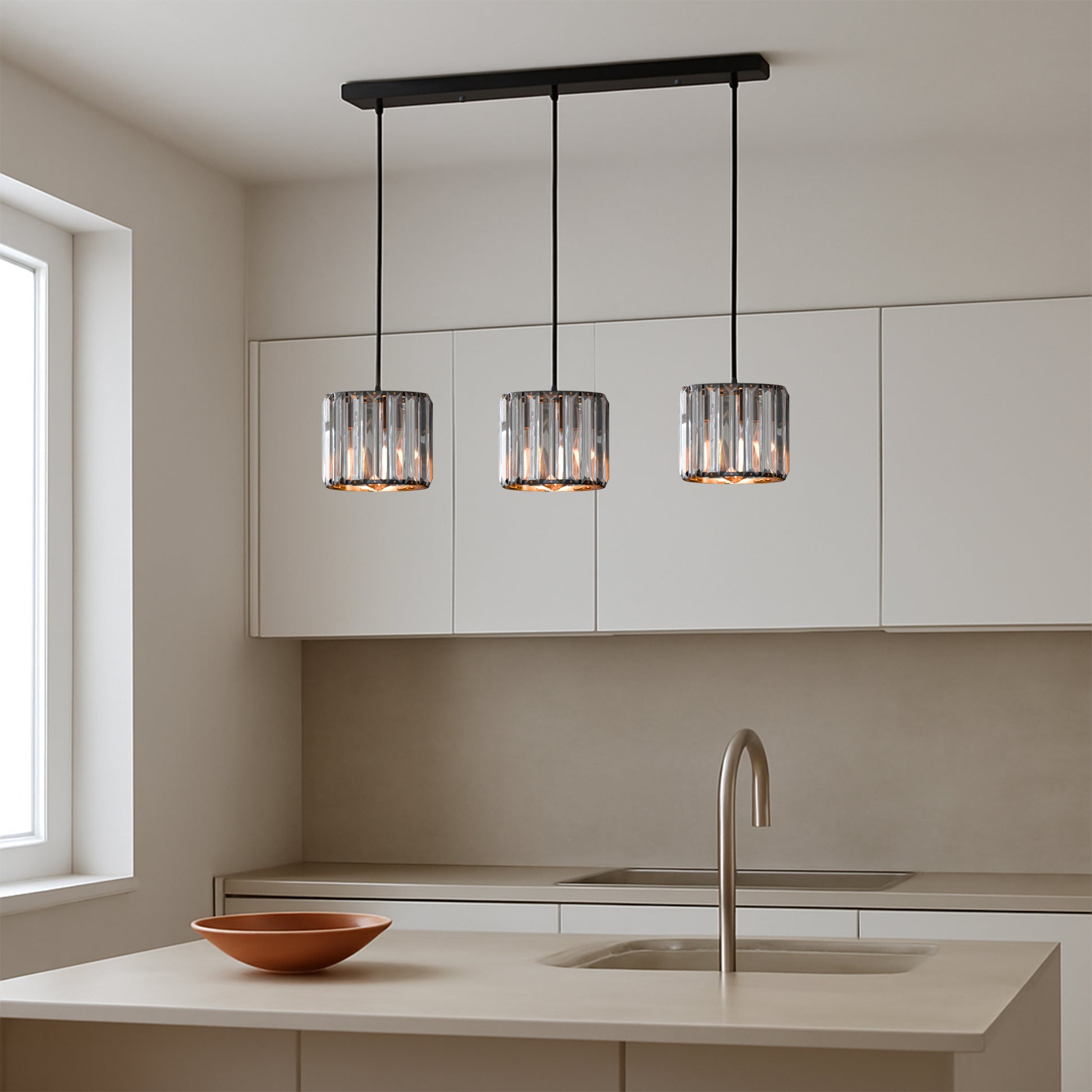 - Esta lámpara colgante de 3 luces combina un diseño moderno con elementos de cristal de calidad, el marco resistente y los hermosos efectos crean una apariencia hermosa y elegante.