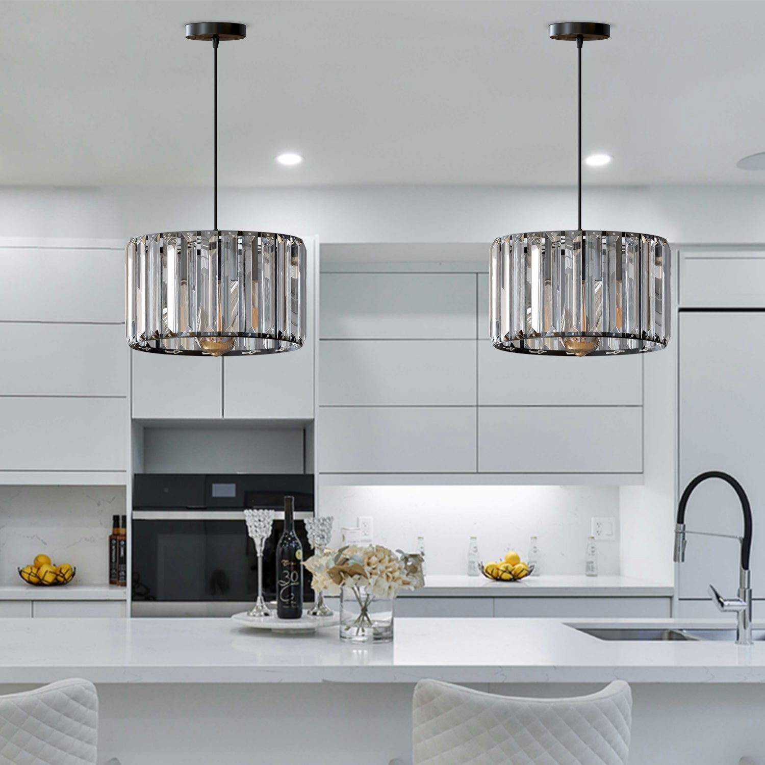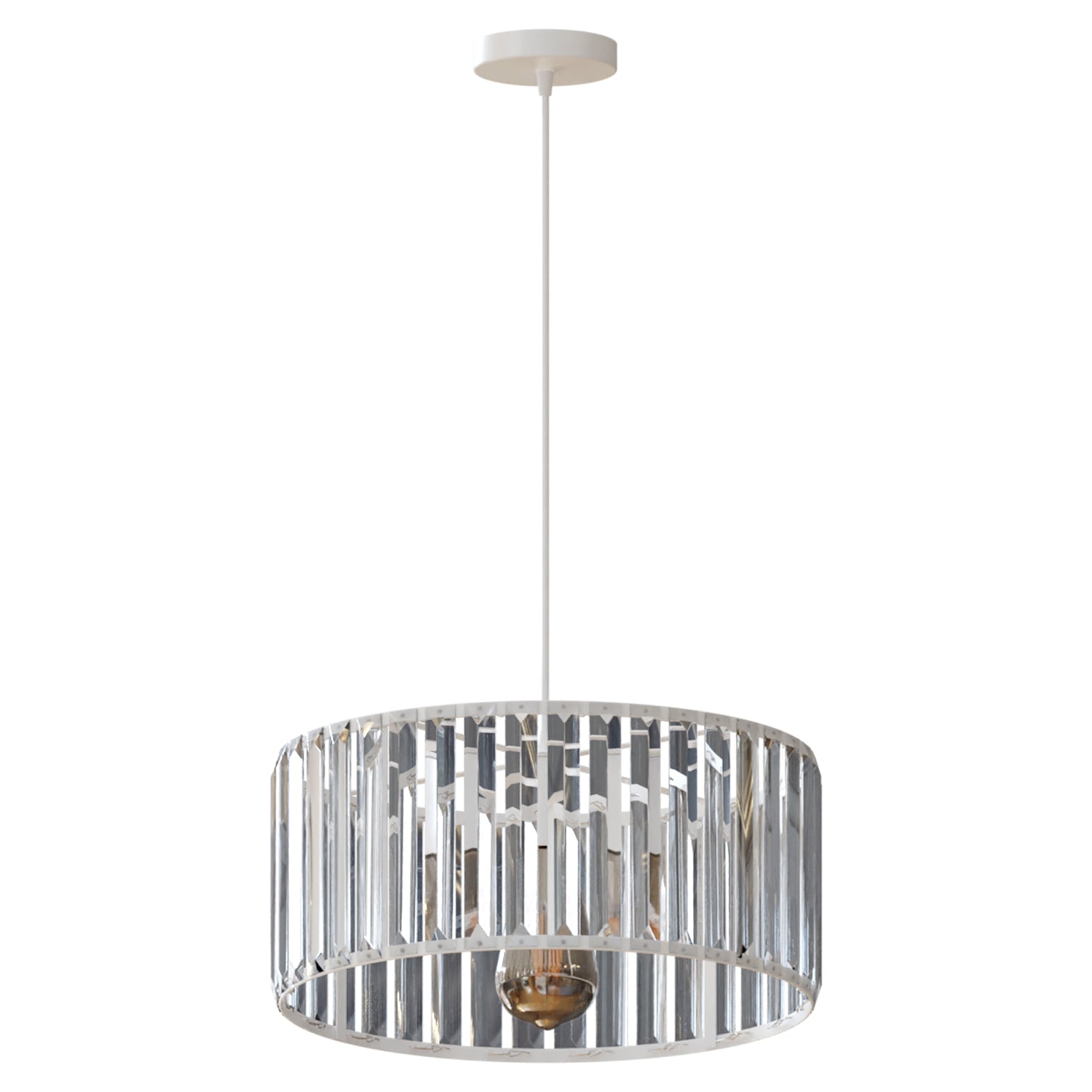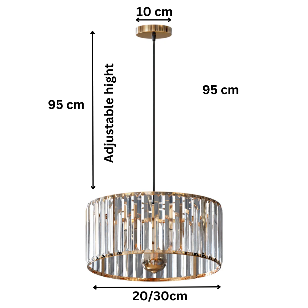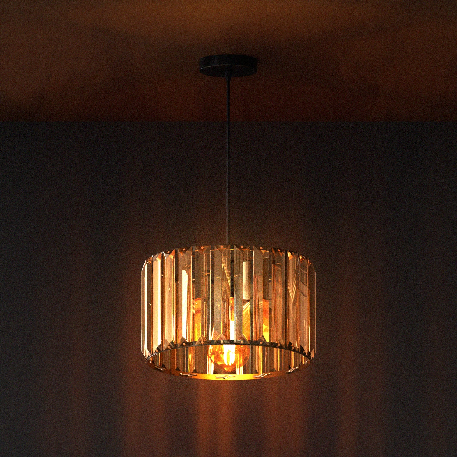 - La moderna lámpara colgante mini con pantalla de cristal presenta una pantalla de cristal en forma de tambor con una base E27 que ofrece una solución de iluminación elegante y con estilo.