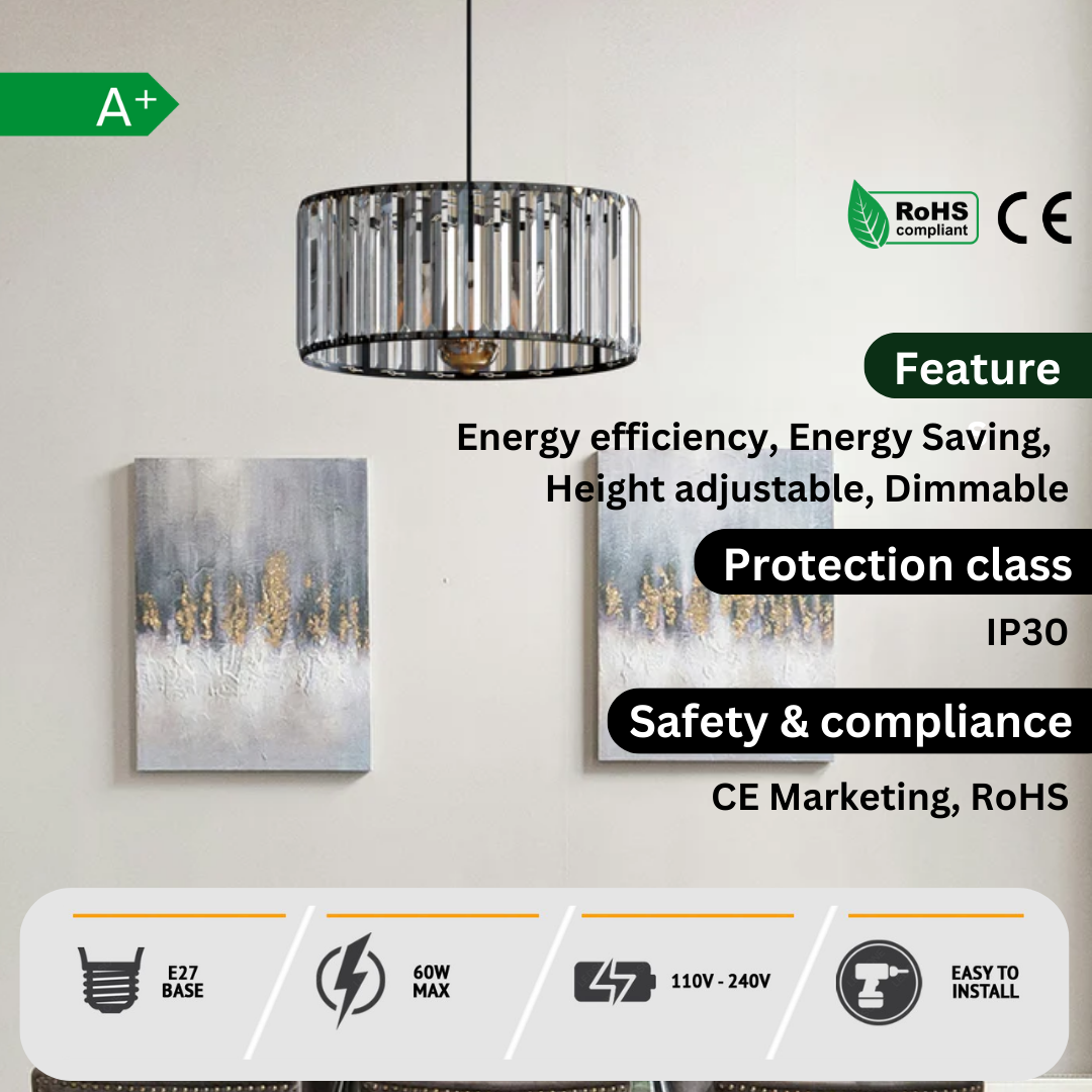 - Las luces colgantes de altura ajustable permiten la personalización según las necesidades de iluminación de diferentes entornos.