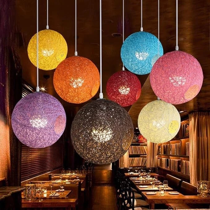 - Fabricado en mimbre de ratán que rodea completamente la bombilla y al mismo tiempo permite que la luz se disperse por la habitación para crear un efecto sorprendente.