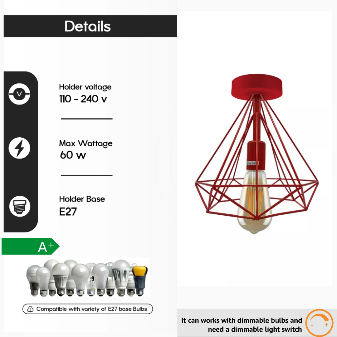 - Tipo de bombilla: Compatible con todo tipo de bombillas E27