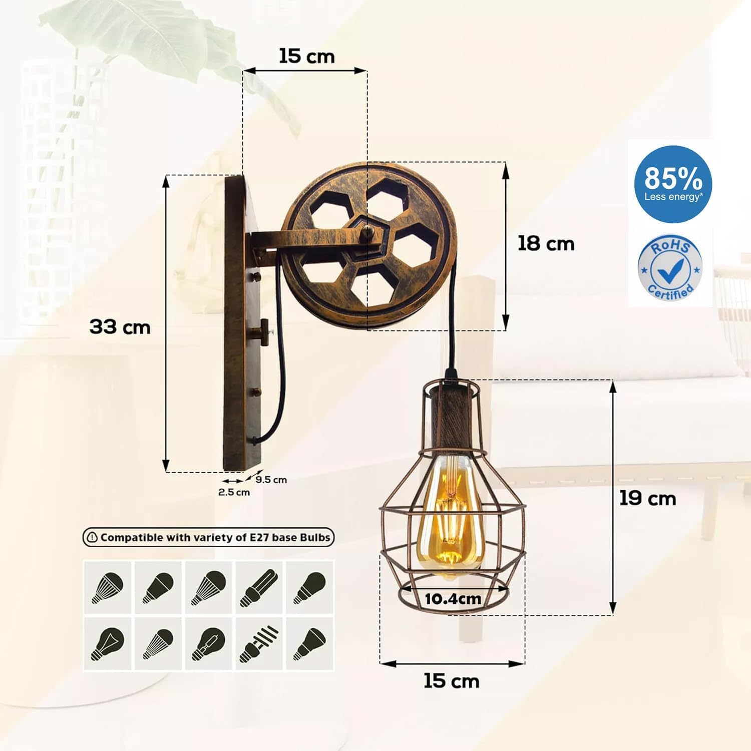 Aplique de pared con polea vintage, estilo retro, iluminación ~1212