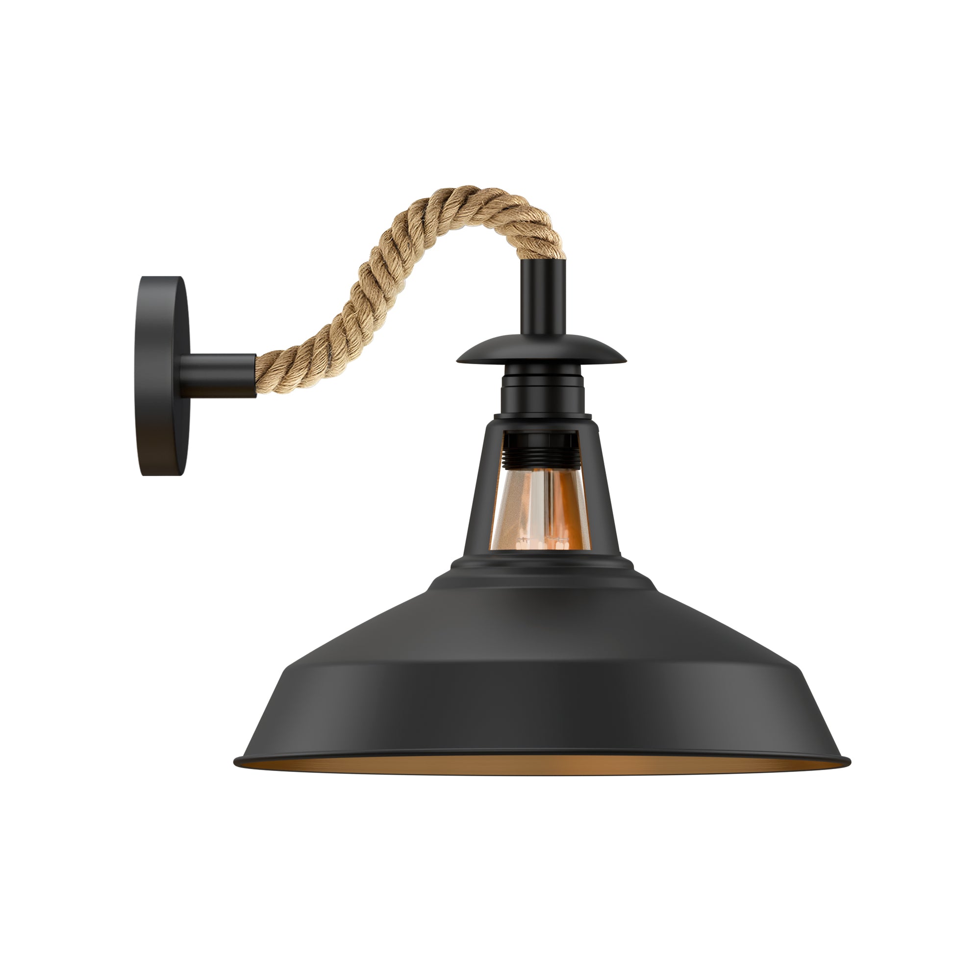 - Elegante aplique de pared de color negro que presenta un cable recubierto de cuerda de cáñamo retorcida con pantalla, ideal para decoración de interiores.