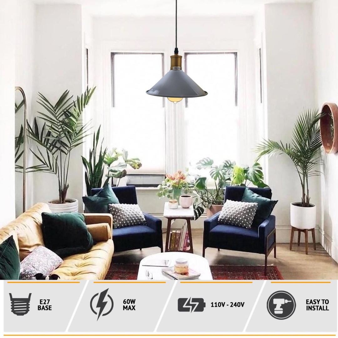 - Un conjunto completo que incluye colgante, pantalla de metal, dosel de techo y herrajes de instalación.