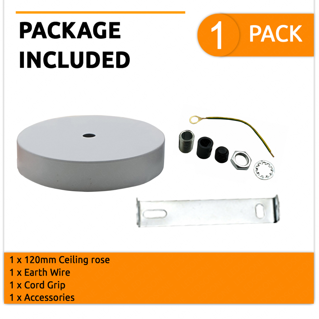 - 1 x Florón de techo seleccionado con accesorios (no incluye cable de tela)