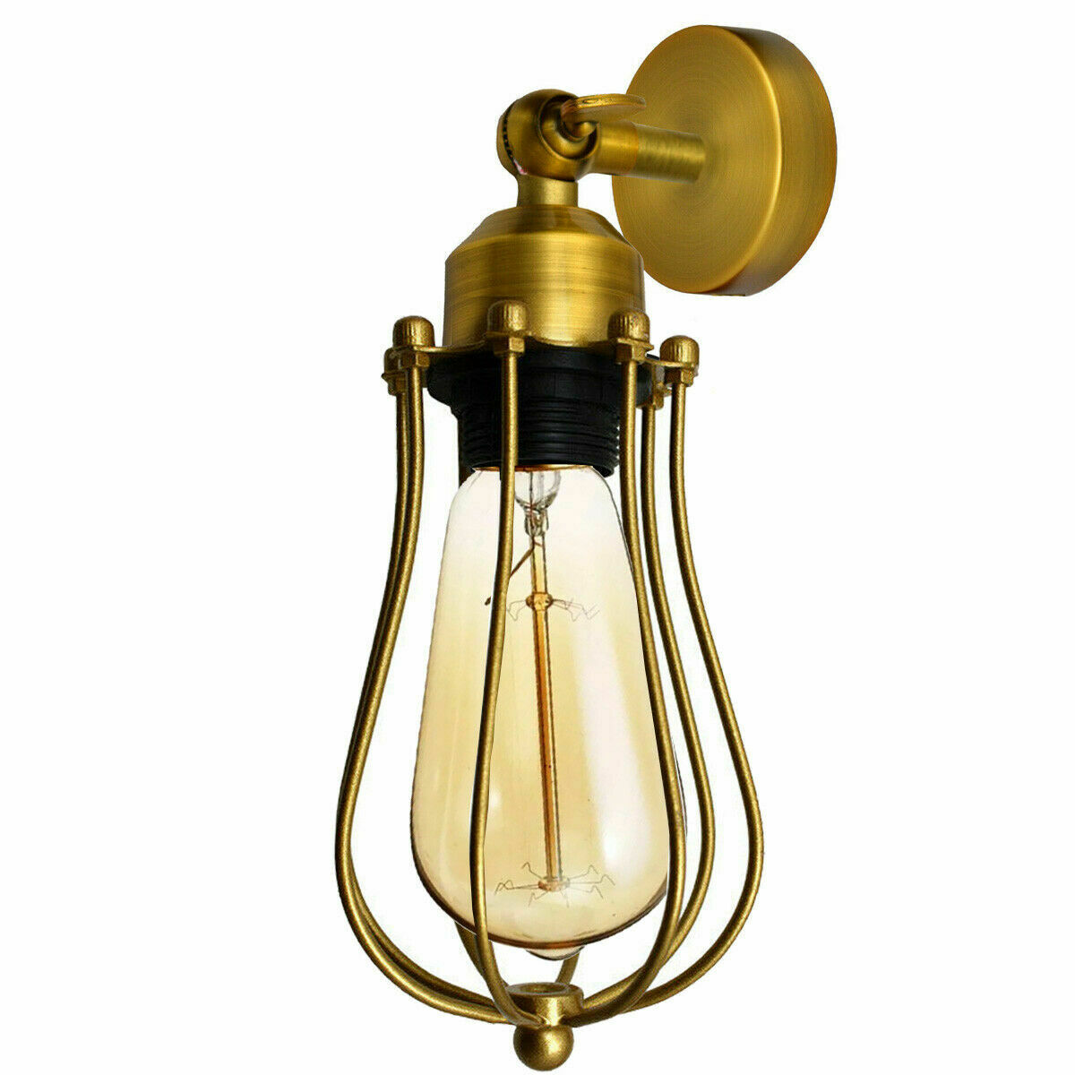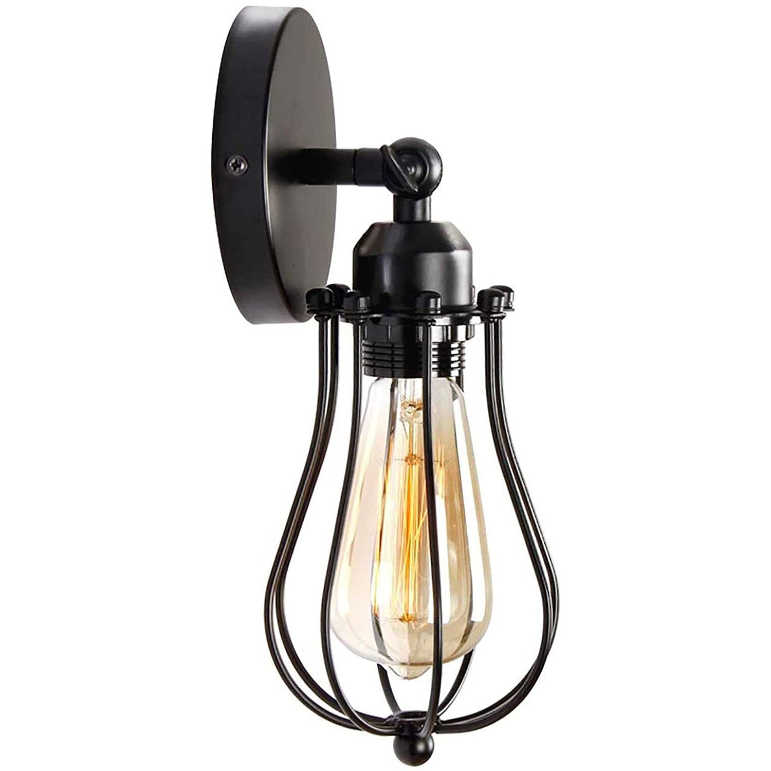 - Lámpara de pared industrial con luz tipo jaula que ofrece encanto y funcionalidad.