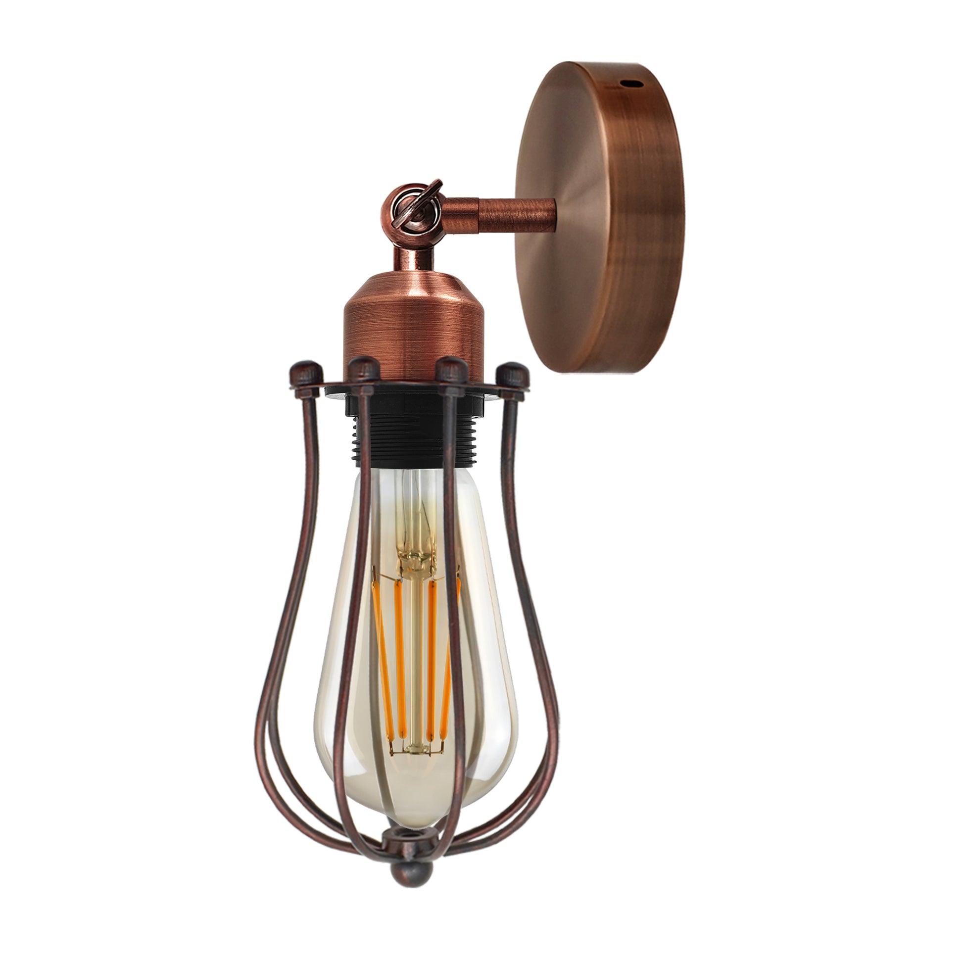 - El brazo ajustable de la lámpara de jaula permite personalizar la dirección de la luz, brindándole la libertad de crear el ambiente perfecto. Esta lámpara de jaula de metal es ideal para salas de estar, comedores, cafeterías, bares o cualquier espacio moderno. Es el complemento perfecto para quienes buscan realzar su decoración con lámparas de pared industriales o lámparas de techo de jaula .