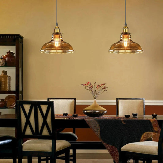 Vintage retro stijl lampenkappen amberkleurige glazen plafond hanglamp~2179