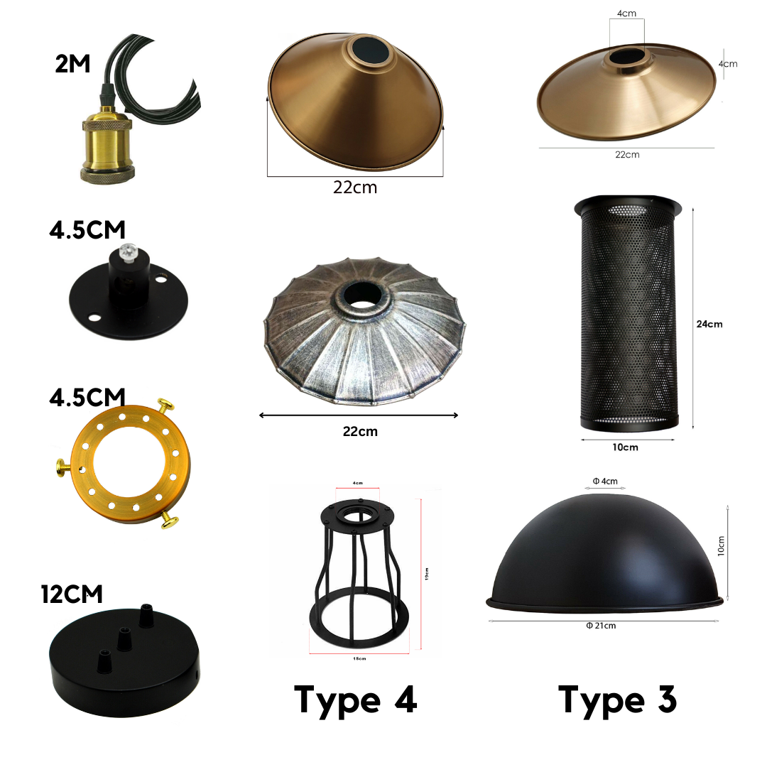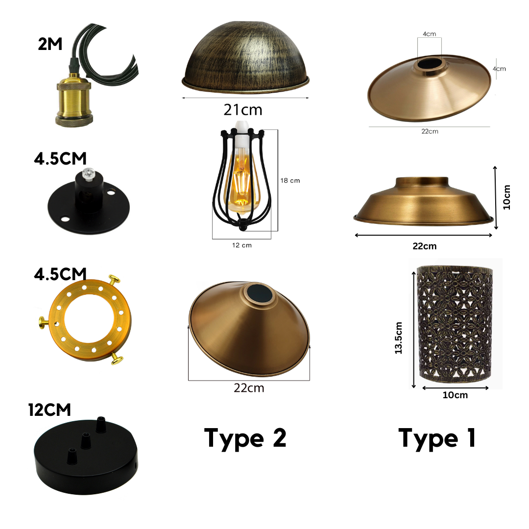 - 1 x hanglampvoet (120 mm x 25 mm)