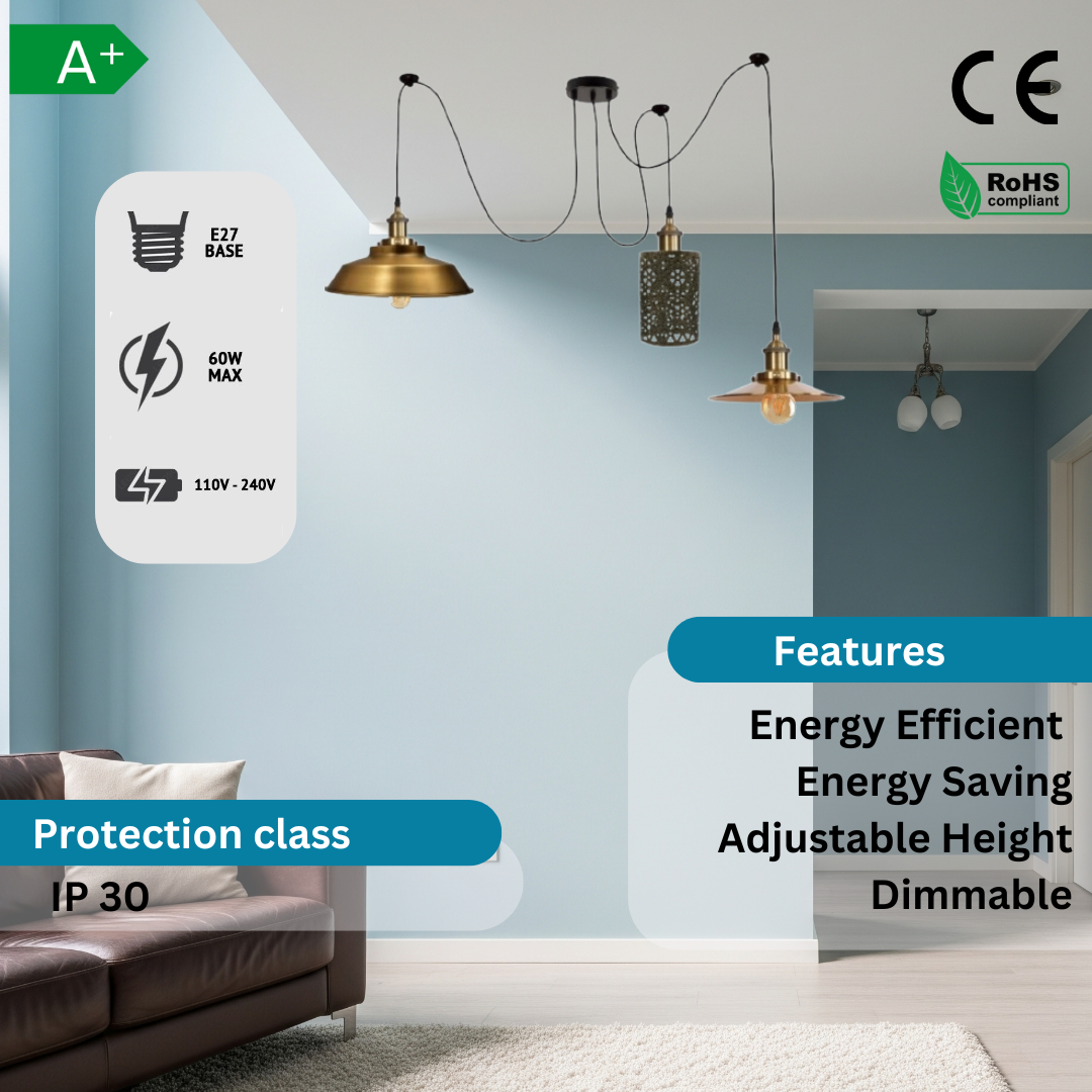 - Deze lampen zijn voorzien van verstelbare ophangdraden, waardoor u zowel de verlichting als het uiterlijk naar uw eigen voorkeur kunt aanpassen.