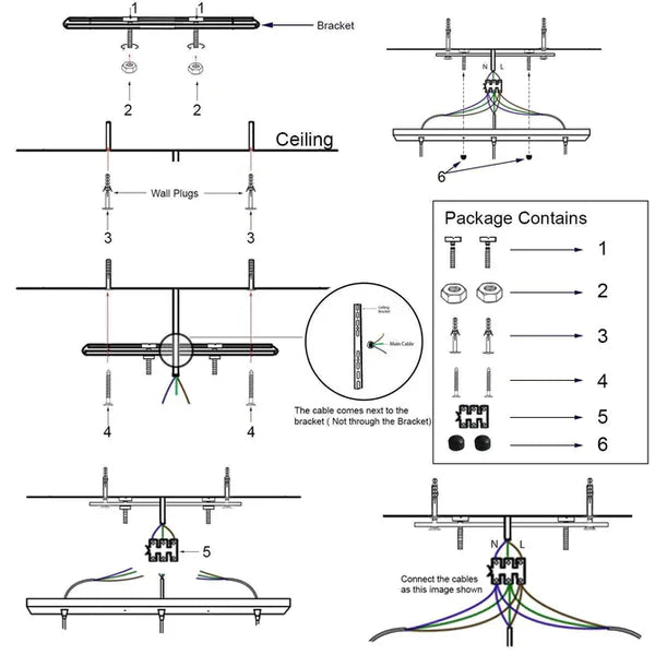 - 1 x Ceiling Rose with cord grip and fitting accessories.