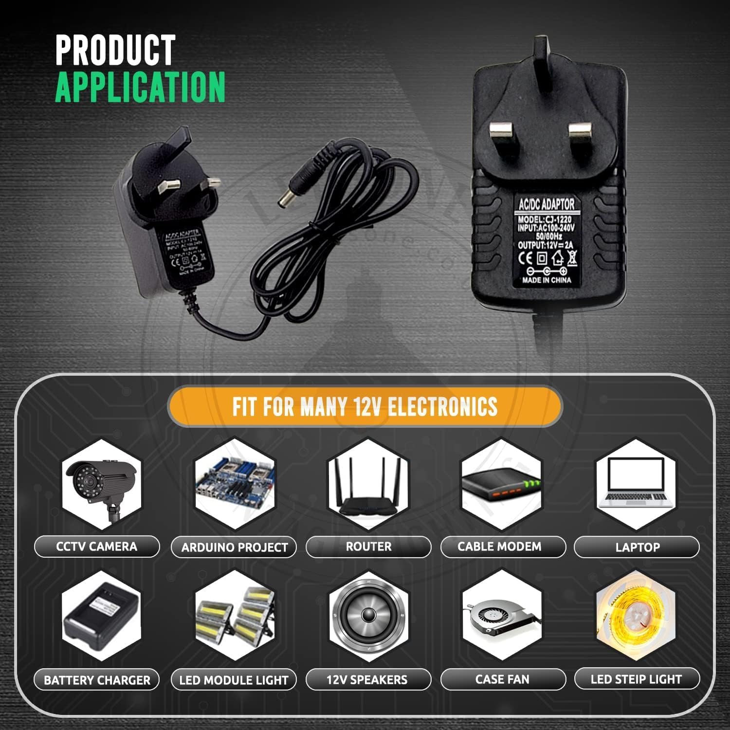 - Standaard mannelijke connector, levert betrouwbare stroom voor LED-lichtsnoeren, striplampen, CCTV-camera's en alle apparaten die 12V-spanning nodig hebben.