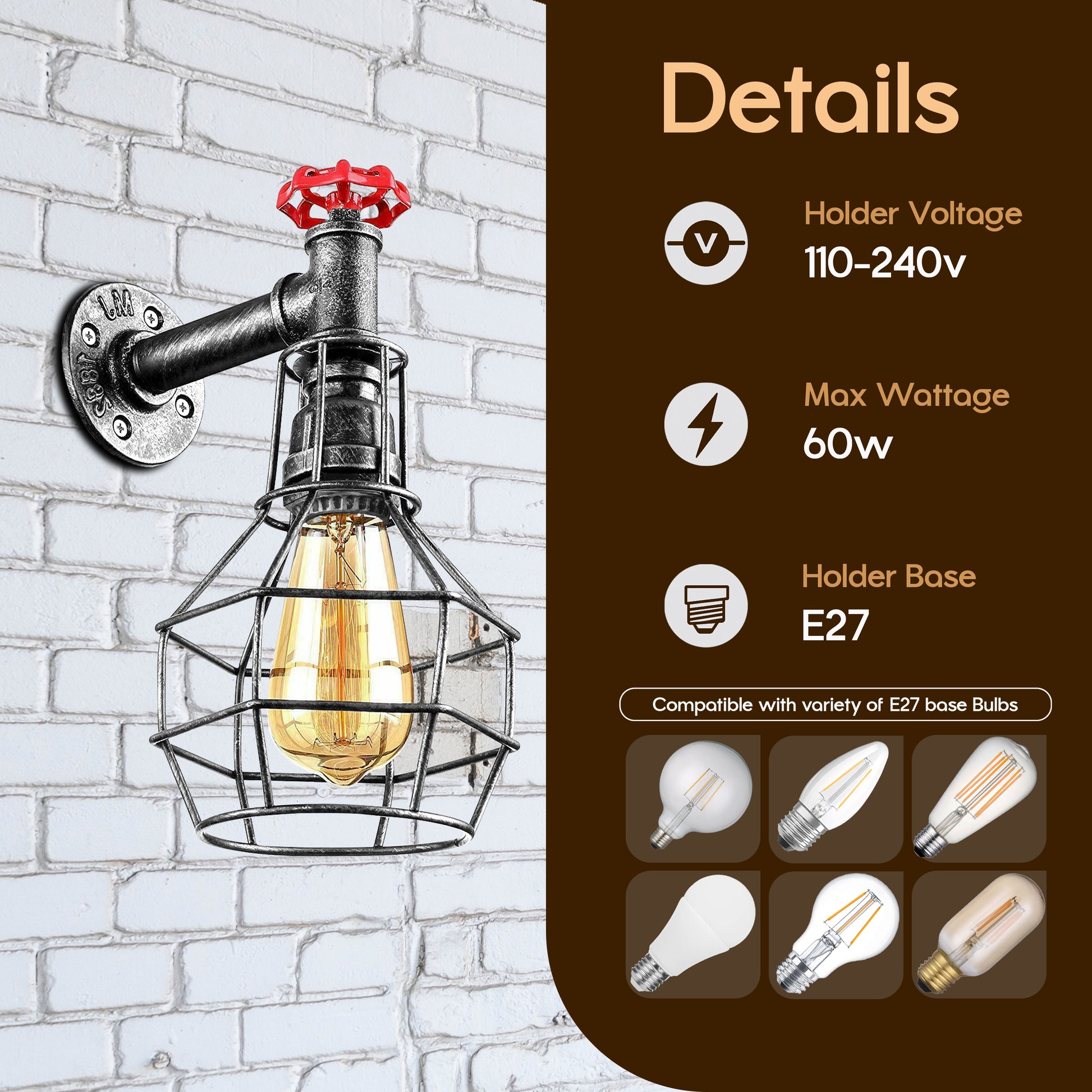 - 1 x Retro wandlamp alleen met kooi (lamp is inbegrepen )