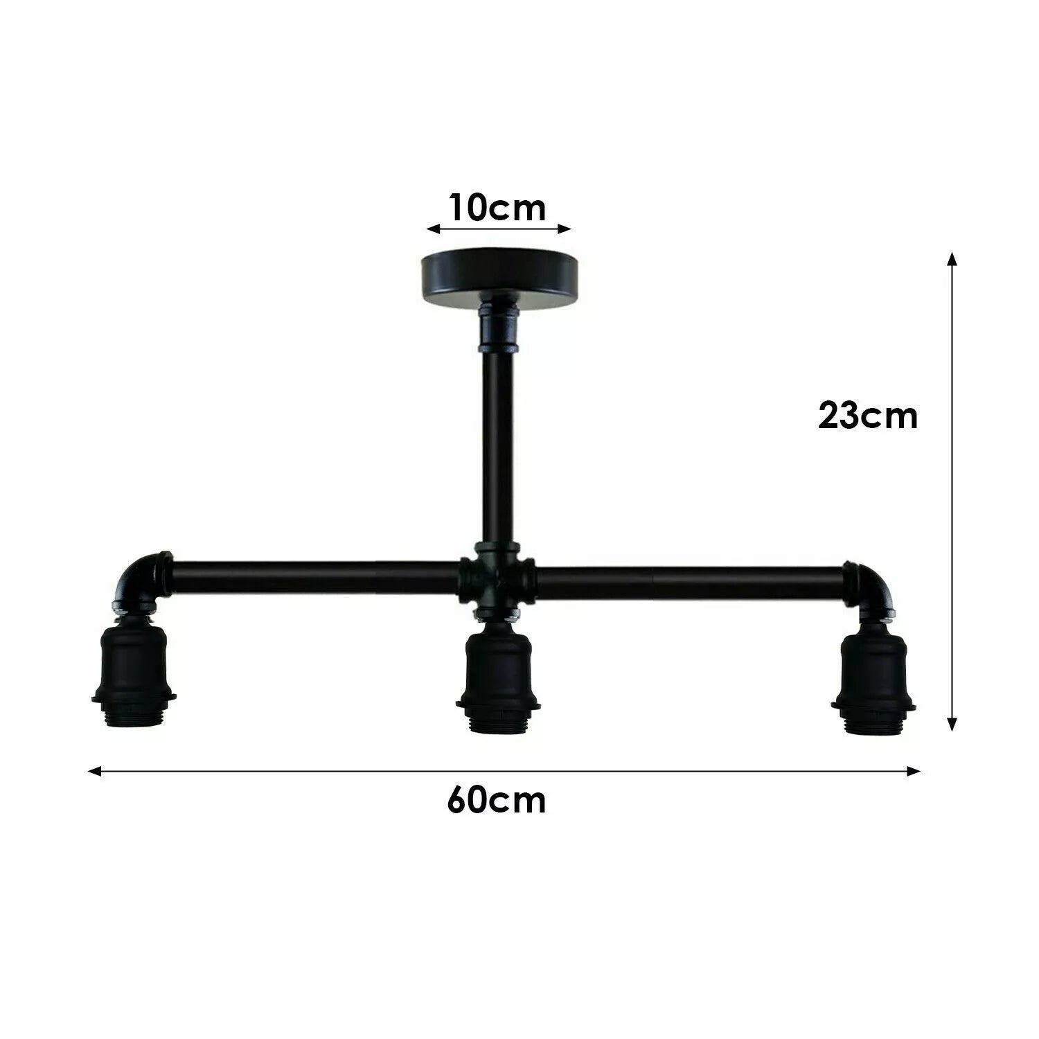- Vintage industriële zwarte metalen pijp 3 scone cup lamp plafondlamp