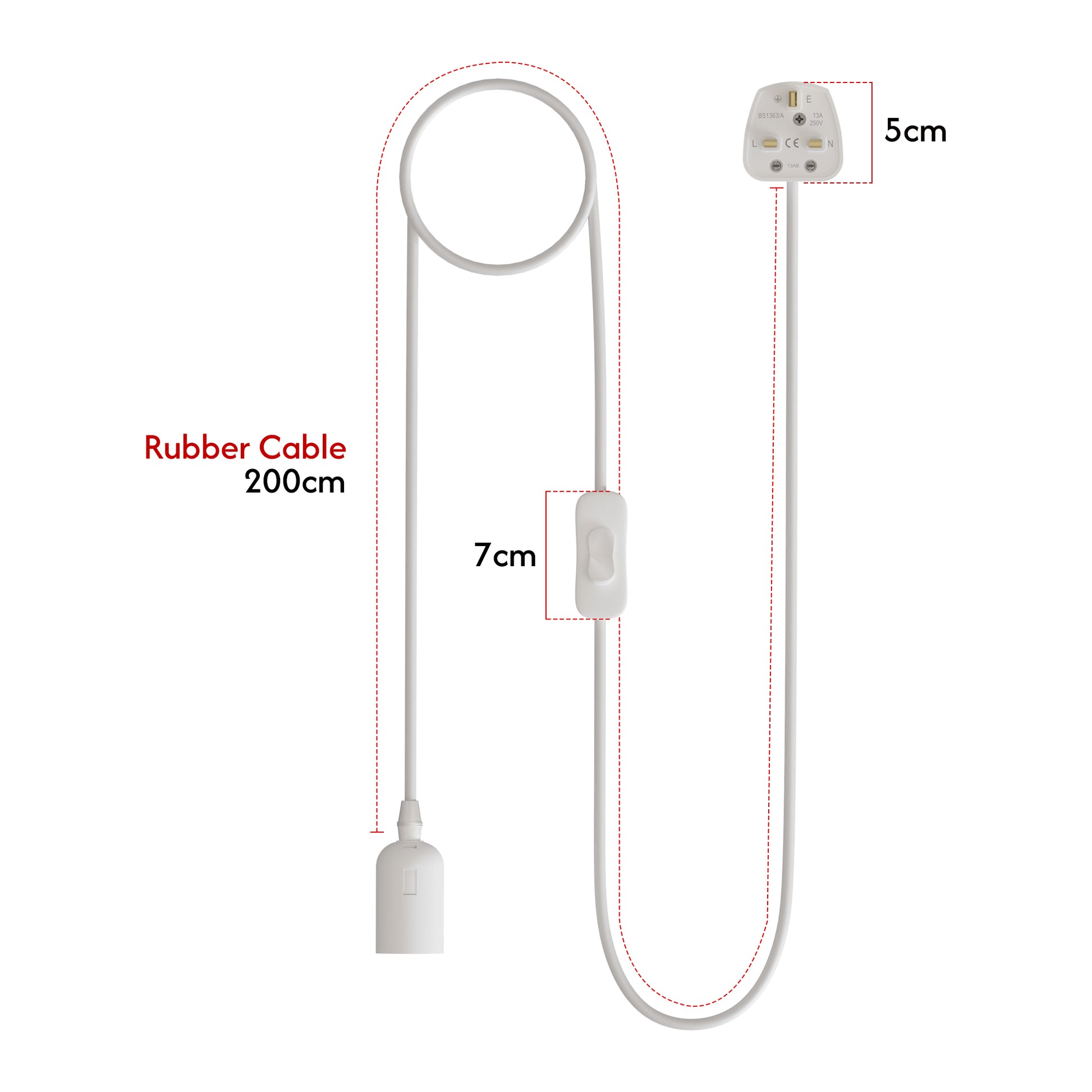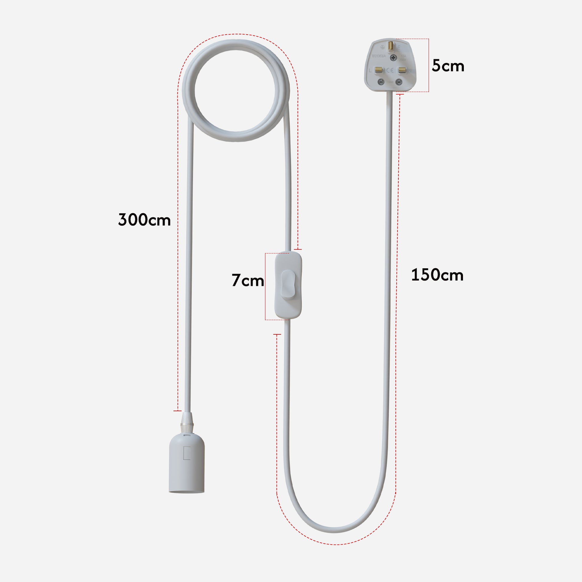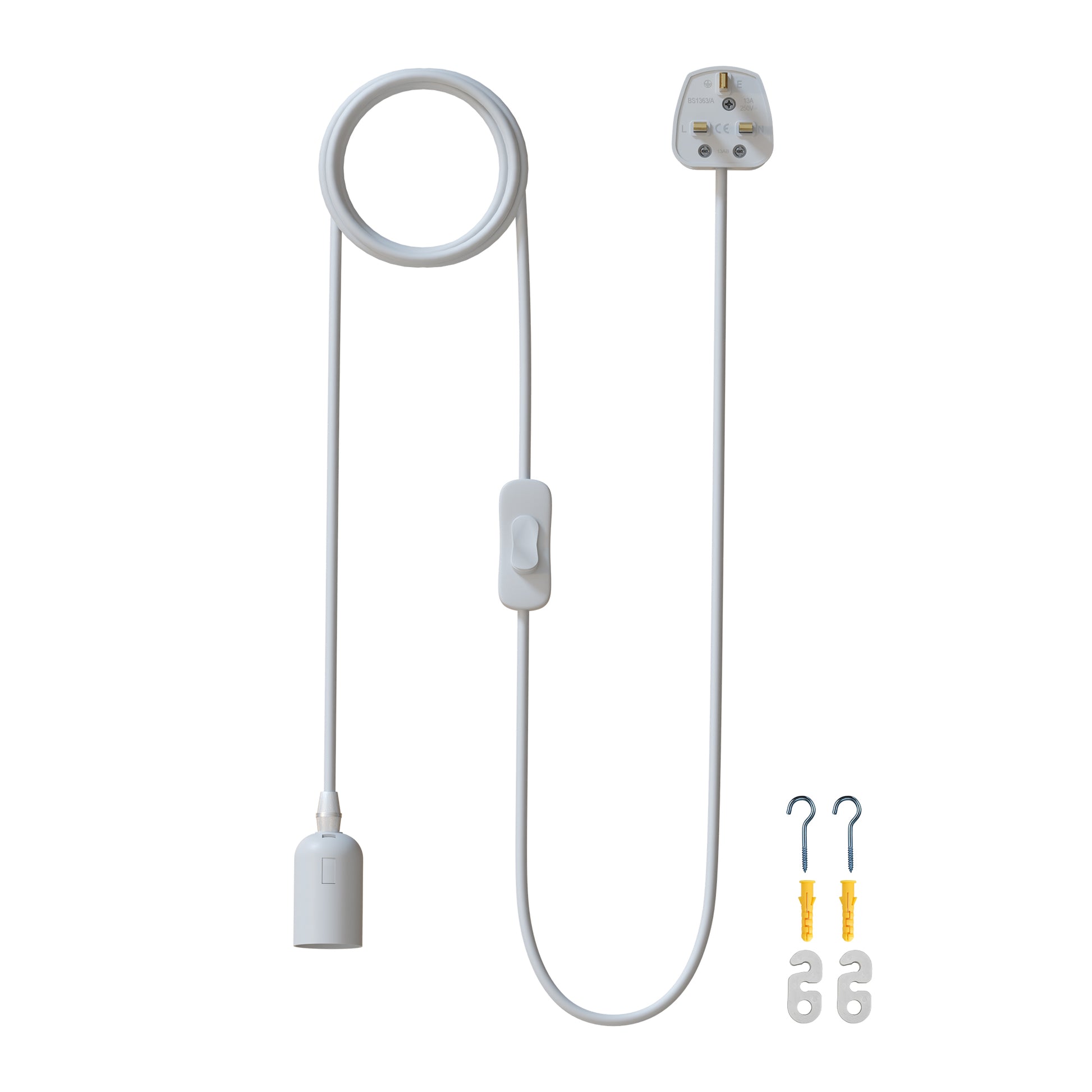 E27 Plug in Hangende Plafondlamp Armatuur Witte Lampfitting Snoer~4547