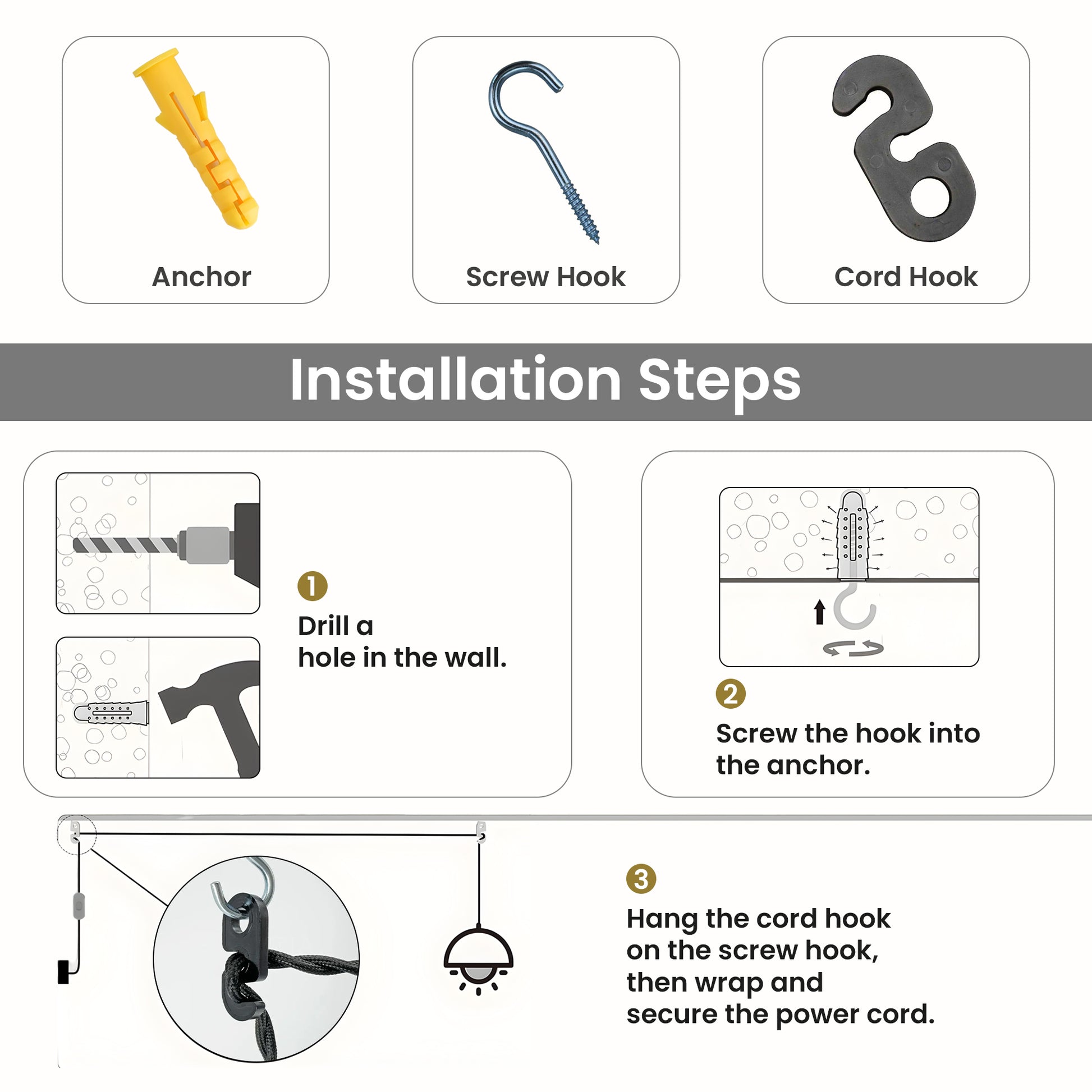- 1 x Plug-in hanglamp met montage-onderdelen.