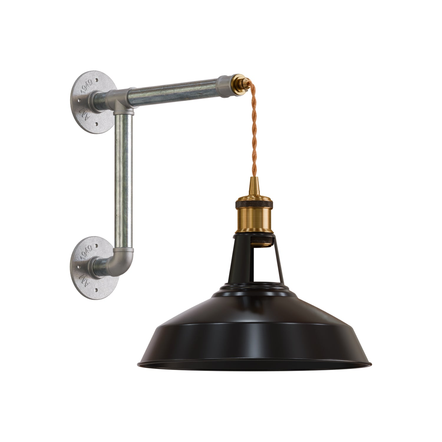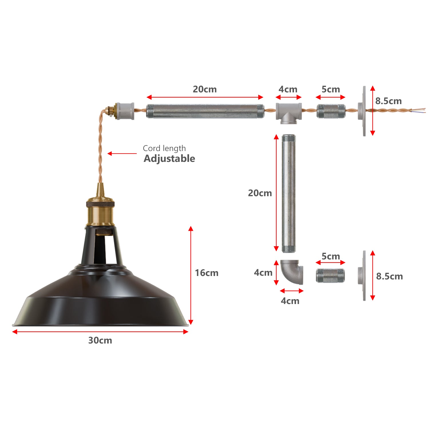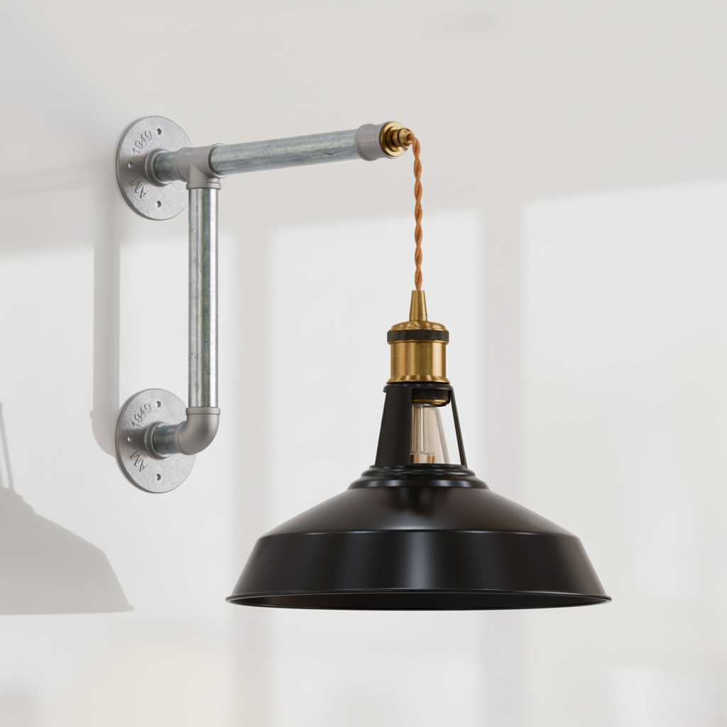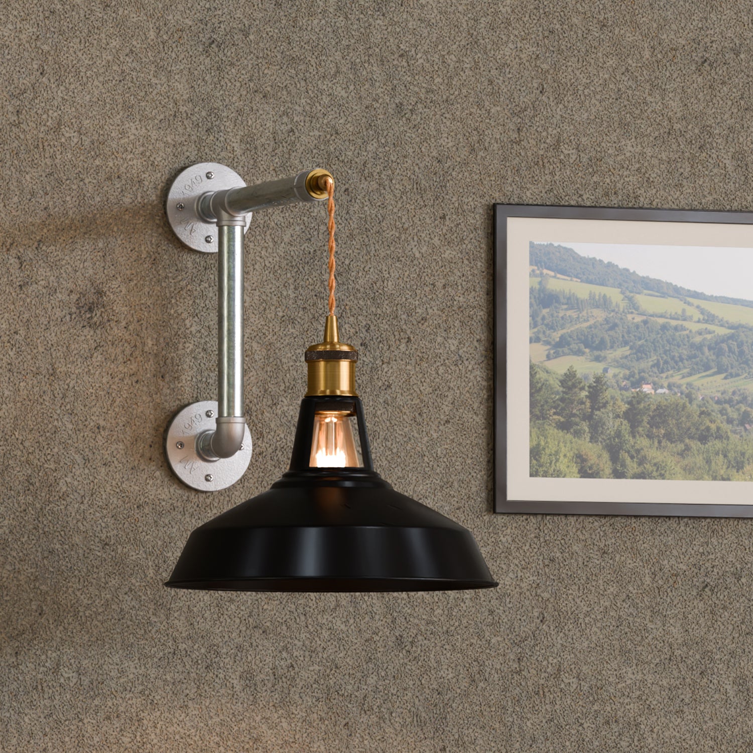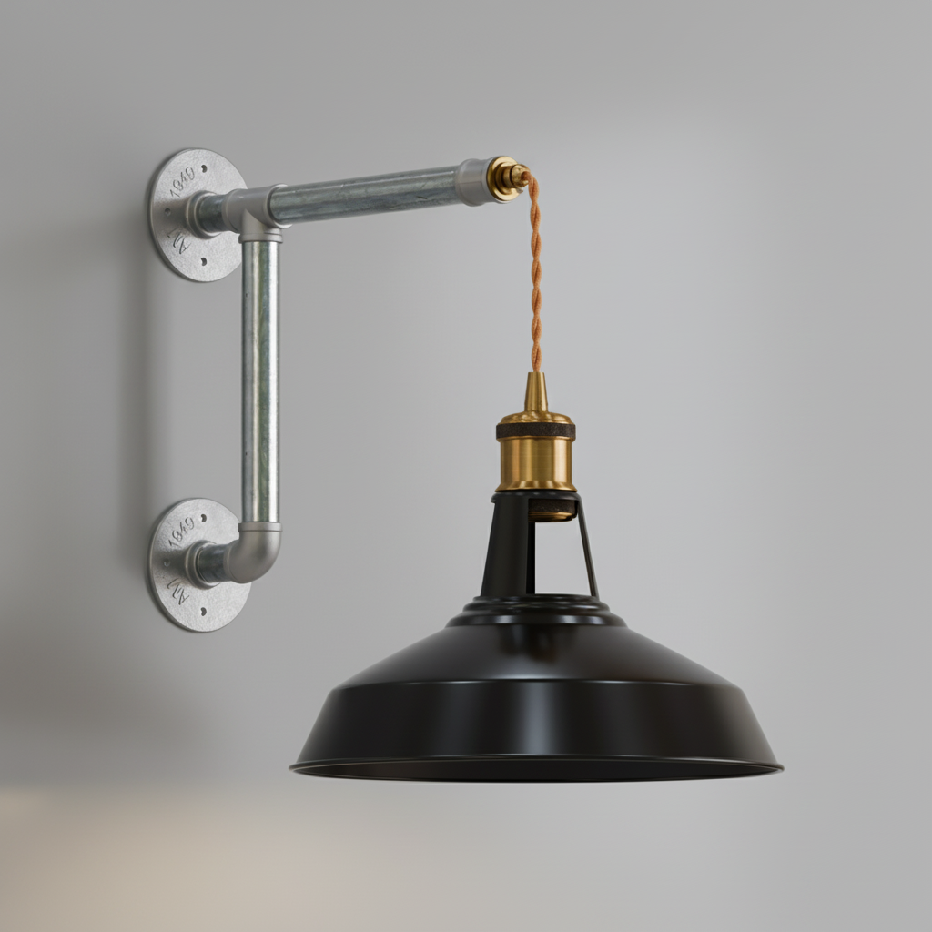 - Crafted with a vintage industrial design, this conduit pipe pendant light adds a bold statement to interiors with its exposed hardware and black barn shade.