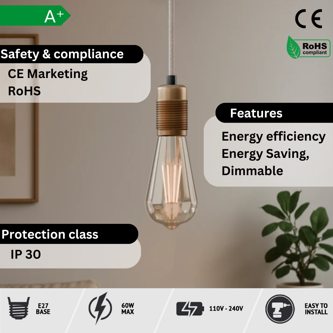• The socket type is usually E27, which is compatible with various types of E27 bulbs Voltage is 110V-240V