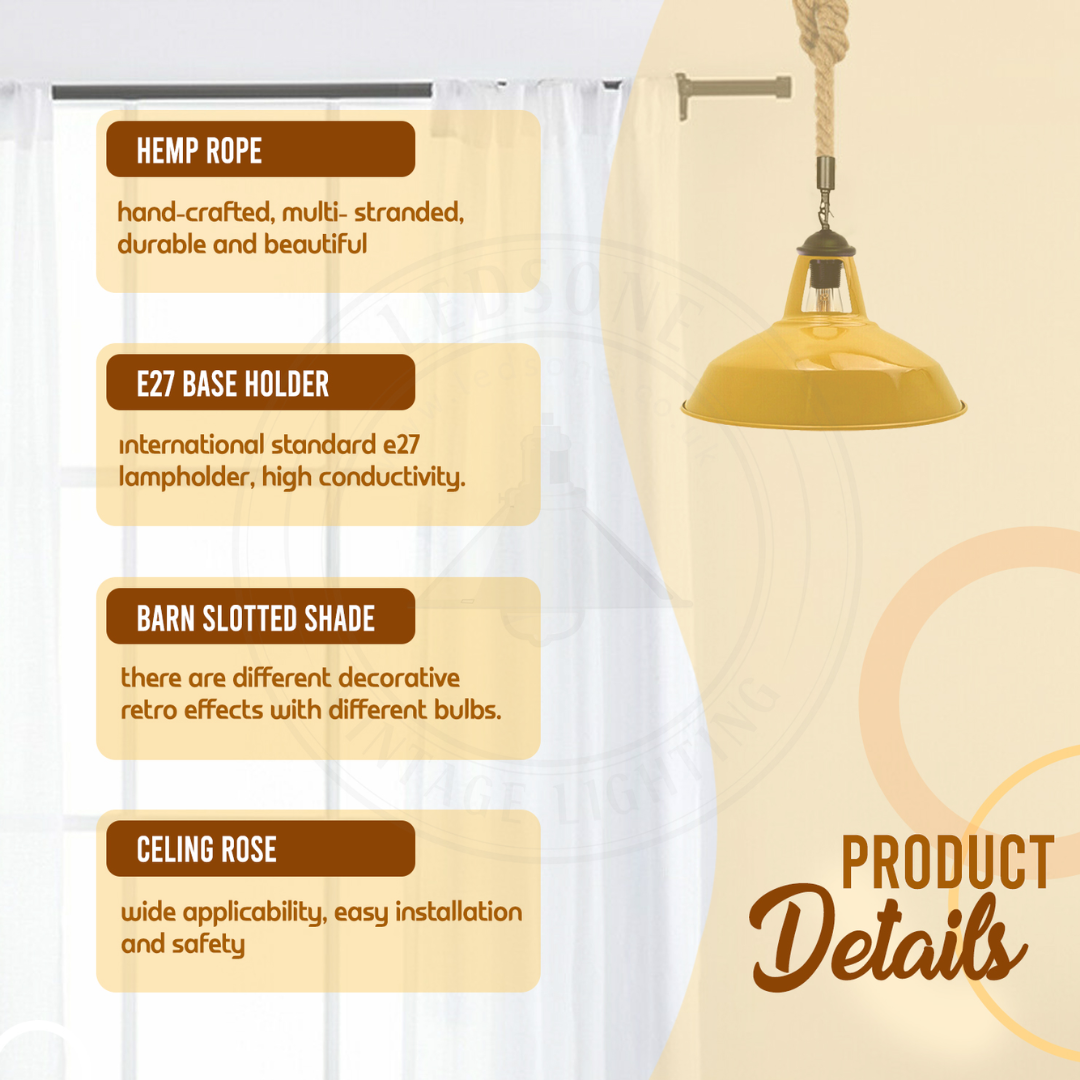 Metal Hemp Rope Hanging Ceiling Pendant Light
