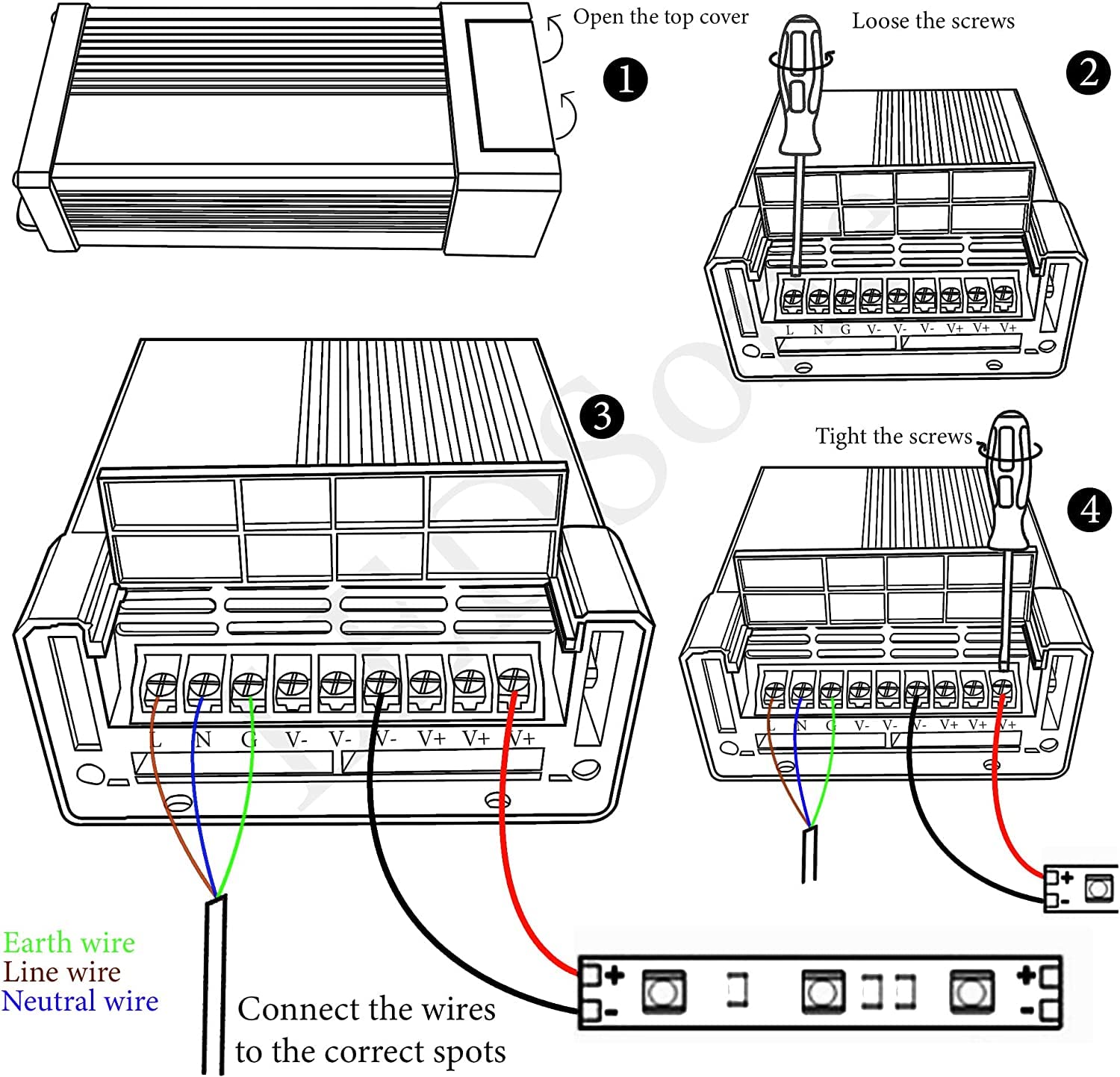 - De voedingstransformator voor verlichting is geschikt voor LED-lampen, LED-strips, LED-modules, gloeilampen, spots, etc.