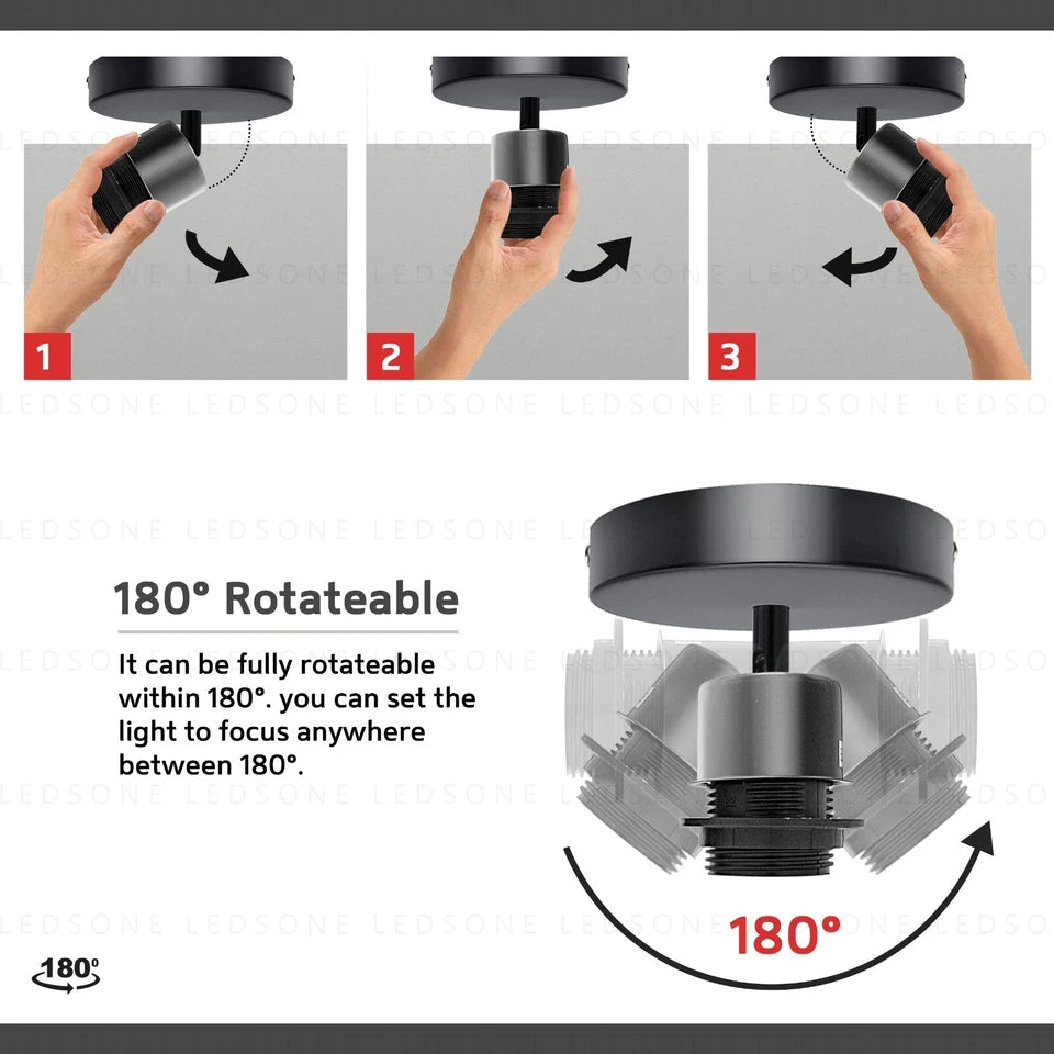 - 1 X Adjustable Multi-Directional 180 Rotatable Arm Ceiling Fixture