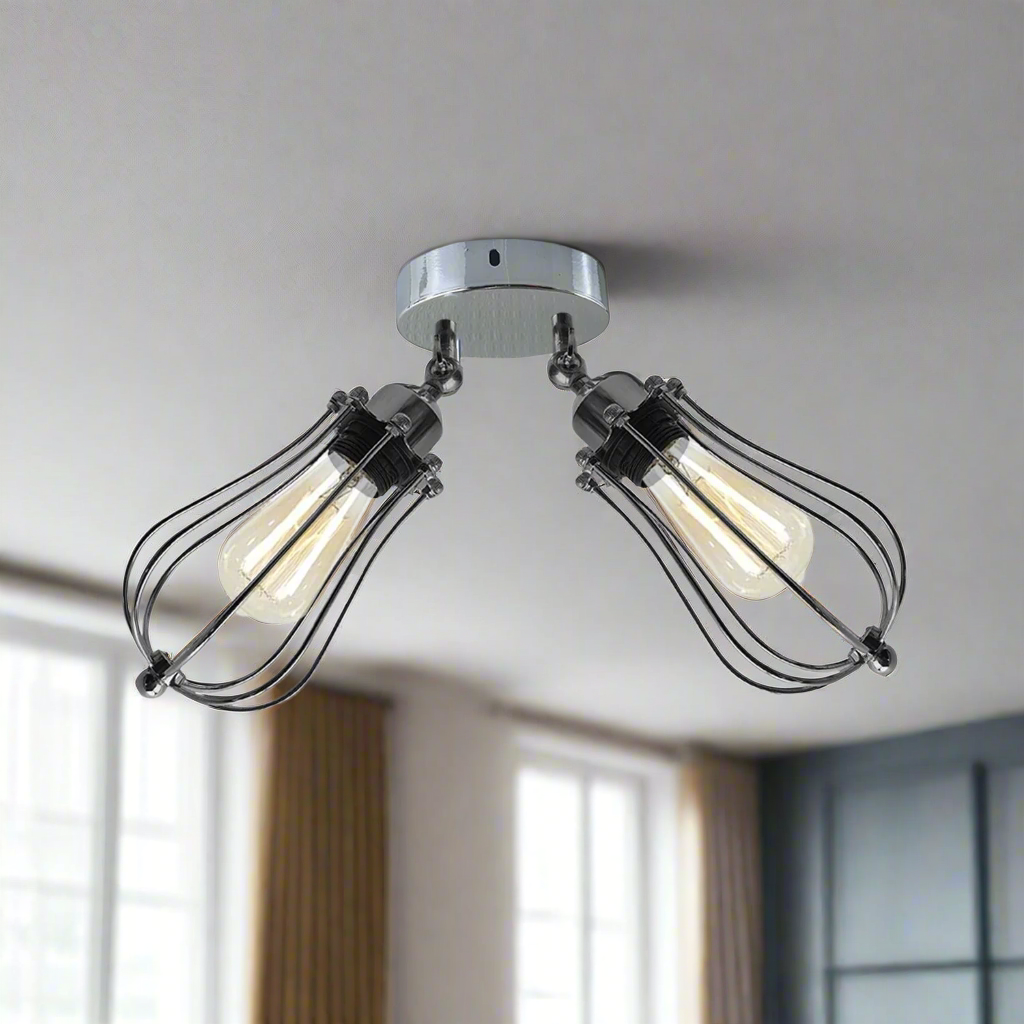 - Het industriële kooiontwerp beschermt de lampen en zorgt ervoor dat het licht optimaal wordt benut.