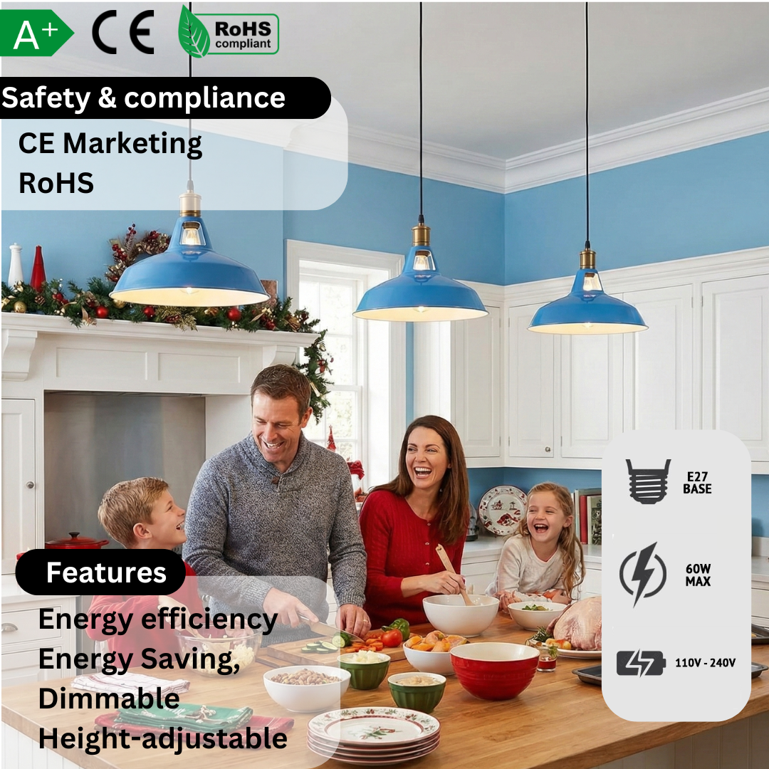 Elevate your interior design with this 3-Pack of Industrial Vintage Pendant Lights. Perfectly blending retro charm with modern durability, these hanging fixtures are designed to make a statement in any room. Whether you are upgrading your kitchen island lighting, adding character to a dining room, or setting the mood in a cafe or bar and Pool Table, these lights deliver the perfect balance of style and function.