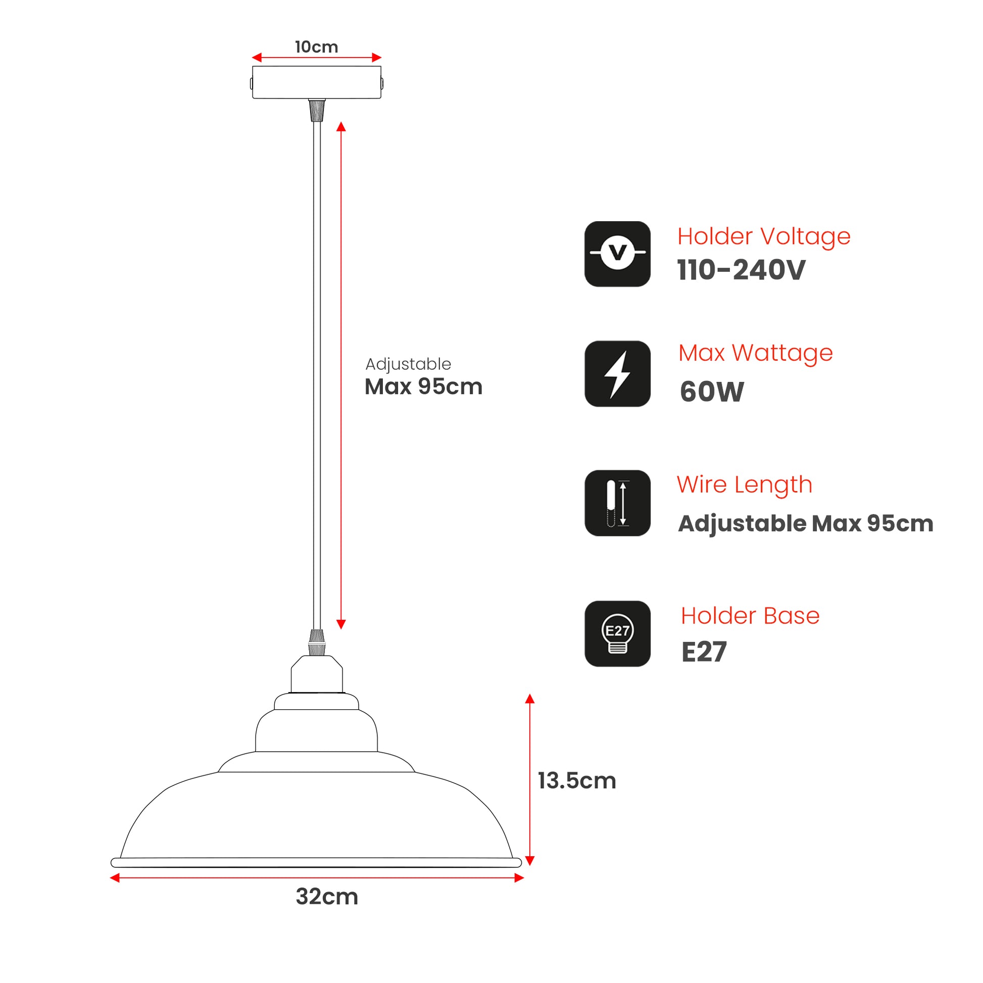 Vintage Retro Hanglamp met Metalen Kap – E27 Lampvoet ~5854