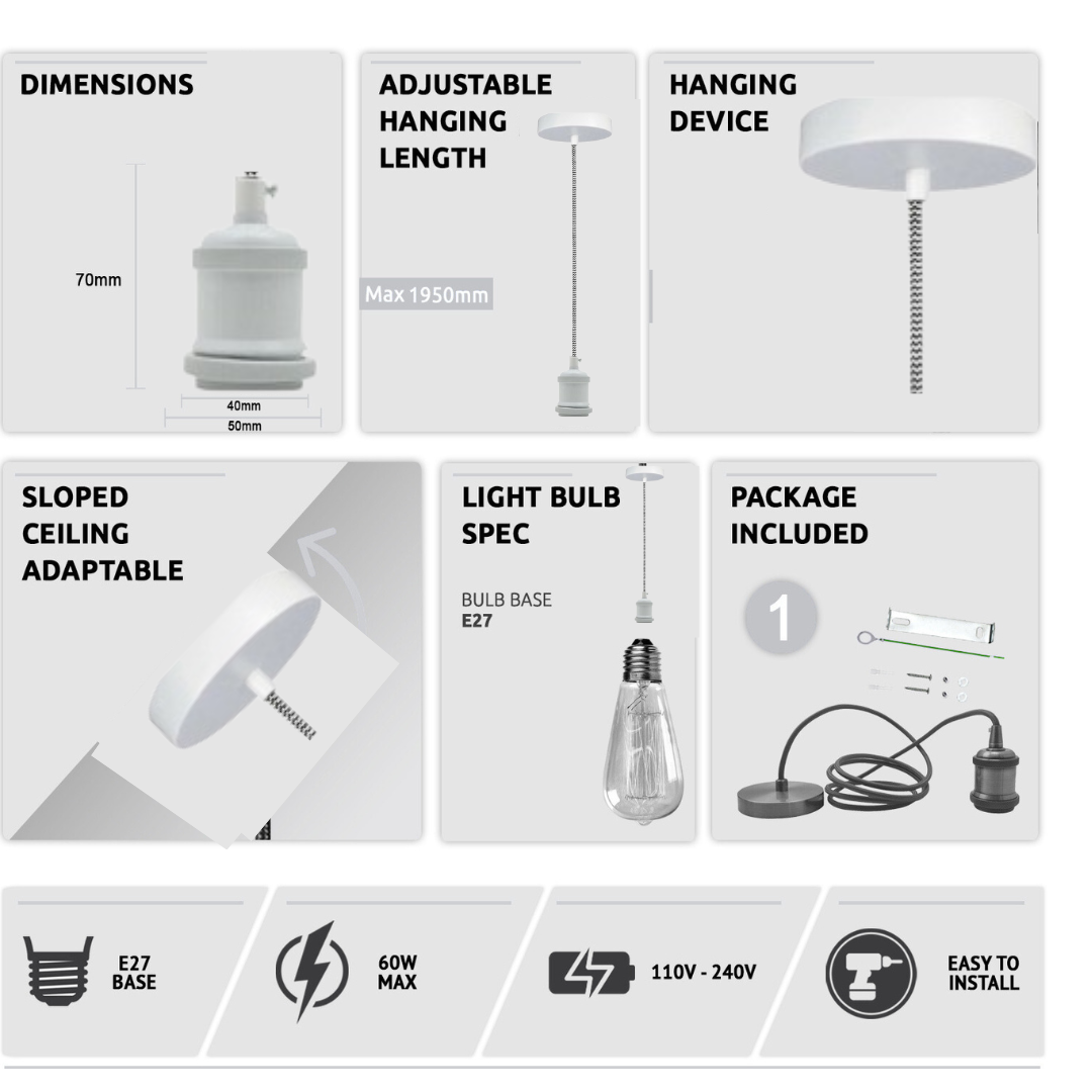 - 1 x Lamphouder met 200 cm kabel (lamp is inbegrepen)