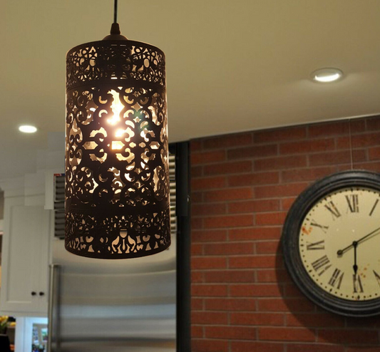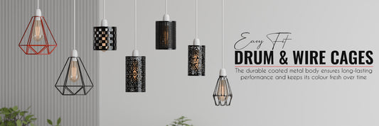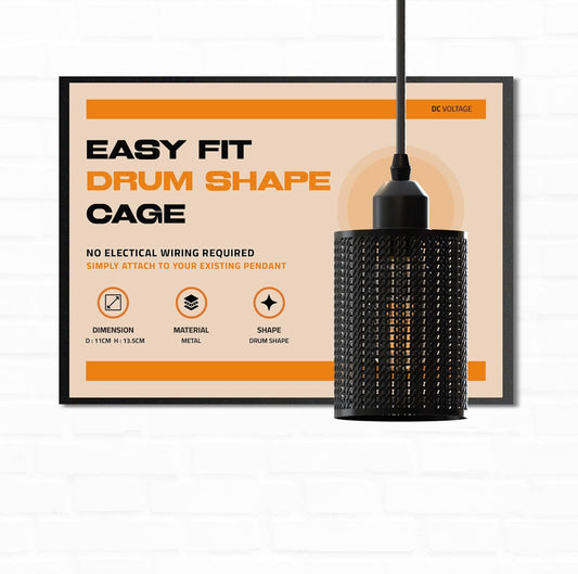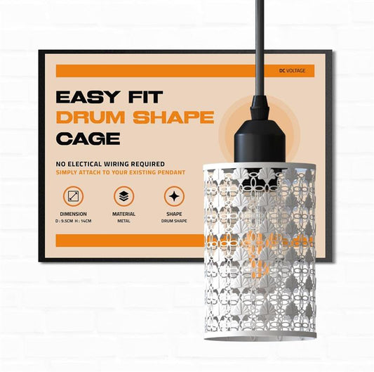 White Drum Metal Wire Cage Ceiling Pendant Lampshade ~1995