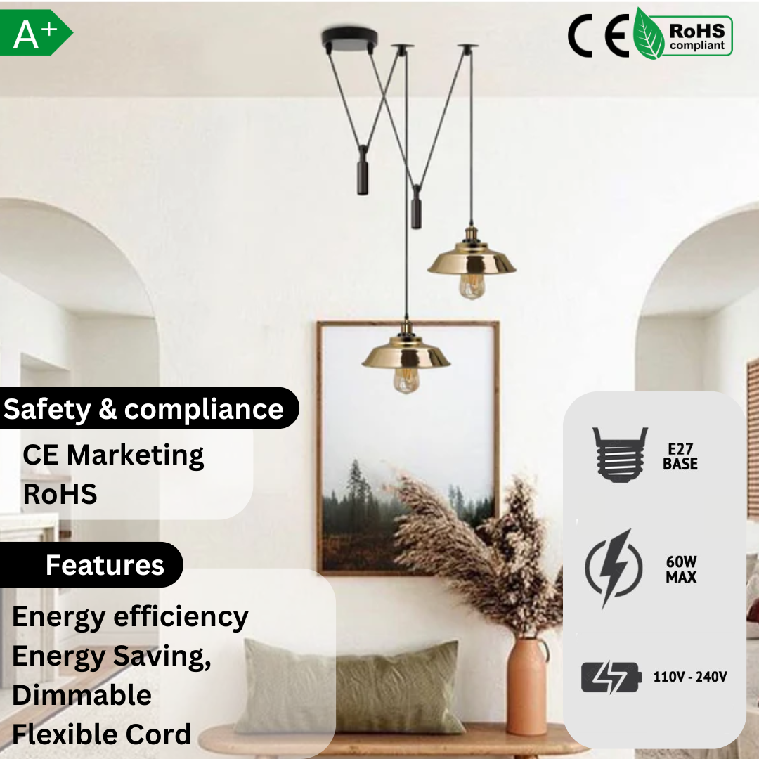 - Industrial Pulley System: Features a unique, functional pulley mechanism that allows for effortless height adjustment to suit your specific lighting needs.