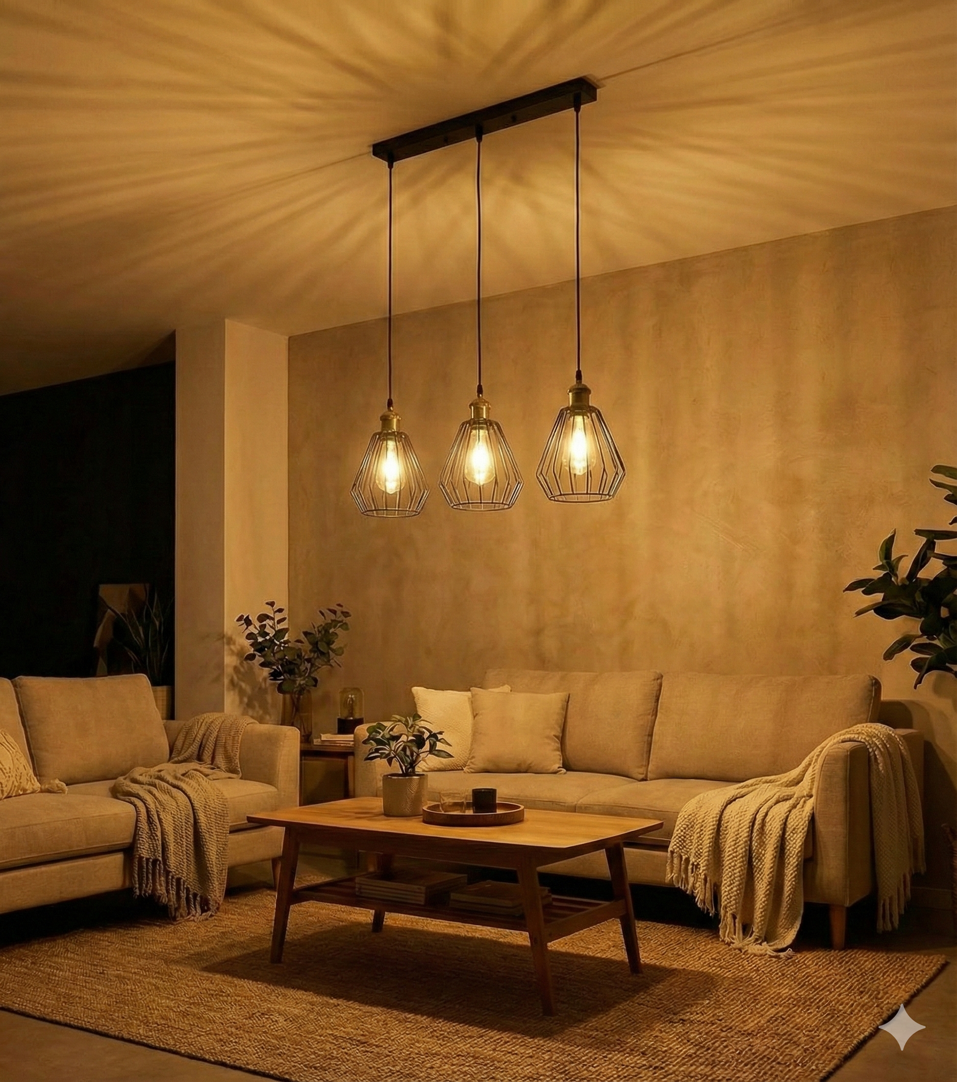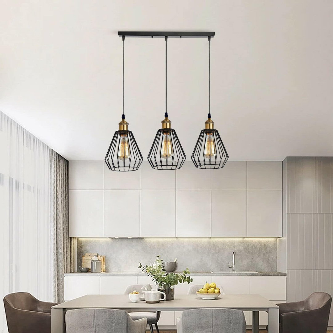 Transform your interior with the LEDSone 3-Head Vintage Diamond Pendant Light. This geometric masterpiece blends industrial strength with retro charm, providing an iconic lighting solution for kitchen islands, dining rooms, and commercial spaces like bars or cafes.