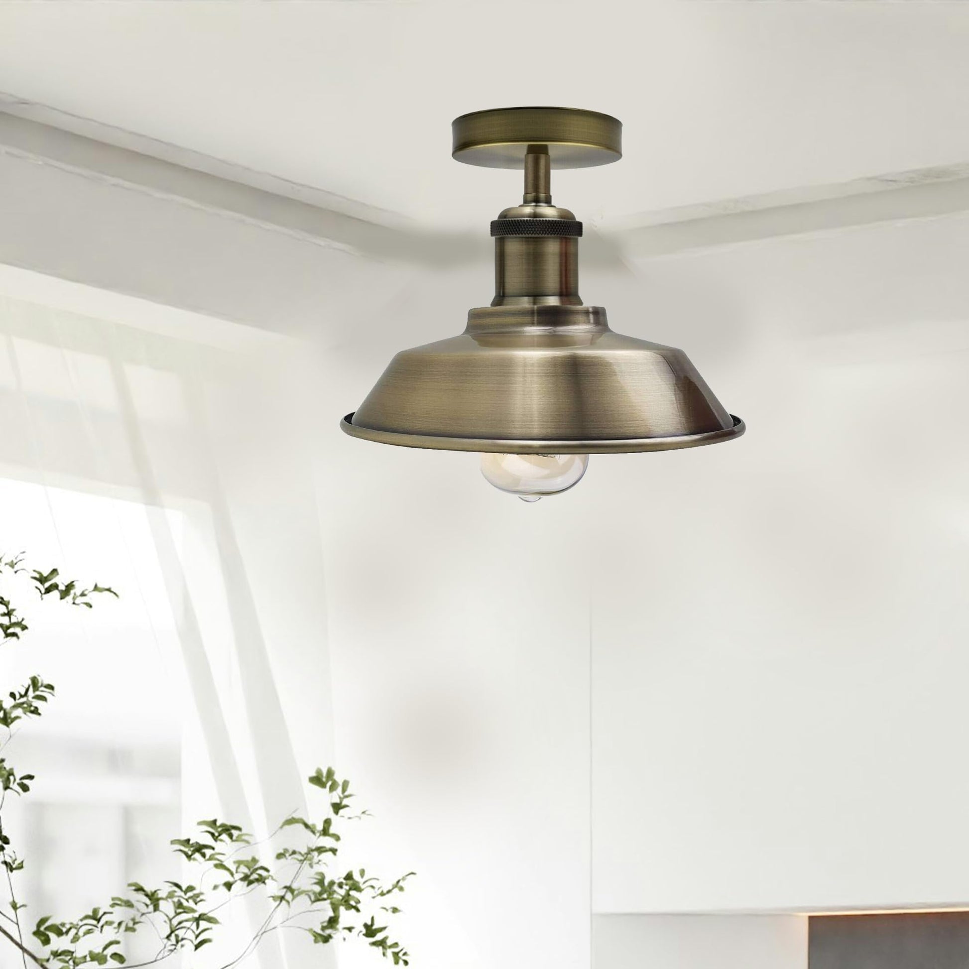 Vintage Industrial Metal Ceiling Light Semi-Flush Mount Green Brass~1926