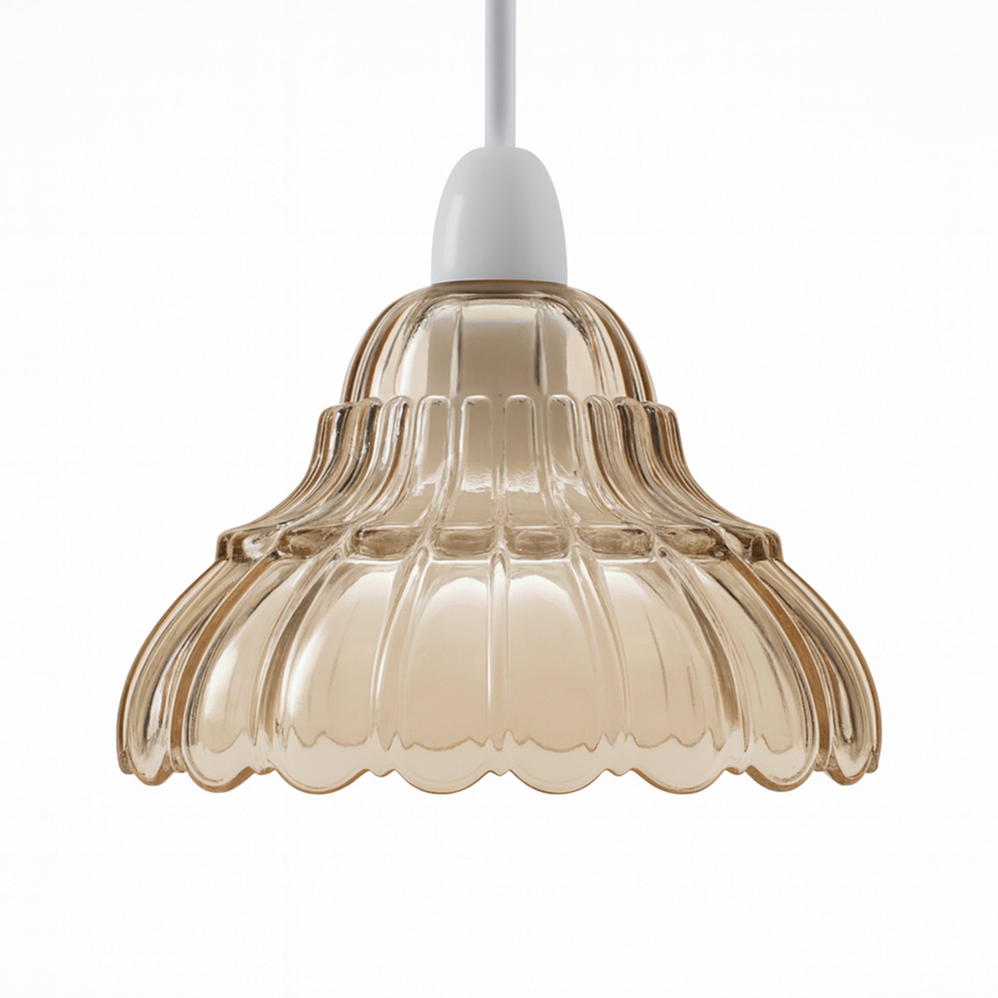 Elevate your interior décor with the Amber Glass Lamp Shade, a stunning 17cm replacement shade that blends vintage charm with modern versatility. Featuring a classic lotus flower shape with delicate scalloped edges and a deep ribbed texture, this moulded glass shade captures and diffuses light to create a cozy, inviting atmosphere.