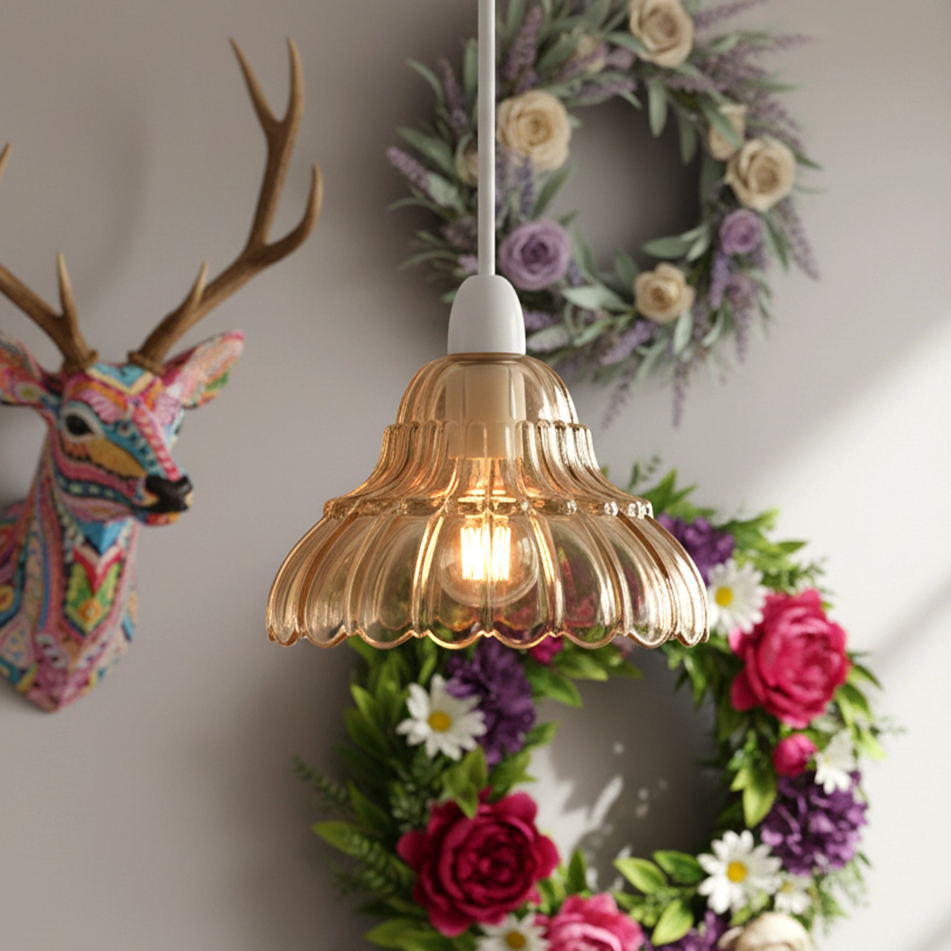 - Warm Ambient Glow: The amber-tinted glass softens harsh light, making it perfect for creating a relaxing mood in bedrooms, living rooms, and dining areas.