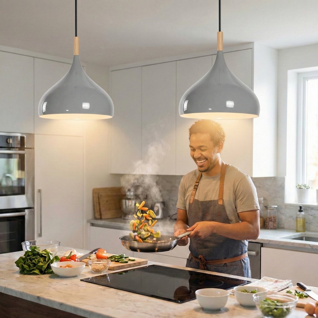 Crafted from high-quality iron with a multi-layered, corrosion-resistant white finish, these lamps are built to withstand the test of time. The heat-resistant metal construction ensures safety and longevity, resisting fading and wear even in busy kitchen environments. The open-bottom dome design maximizes light distribution, providing ample task lighting for cooking, reading, or dining.