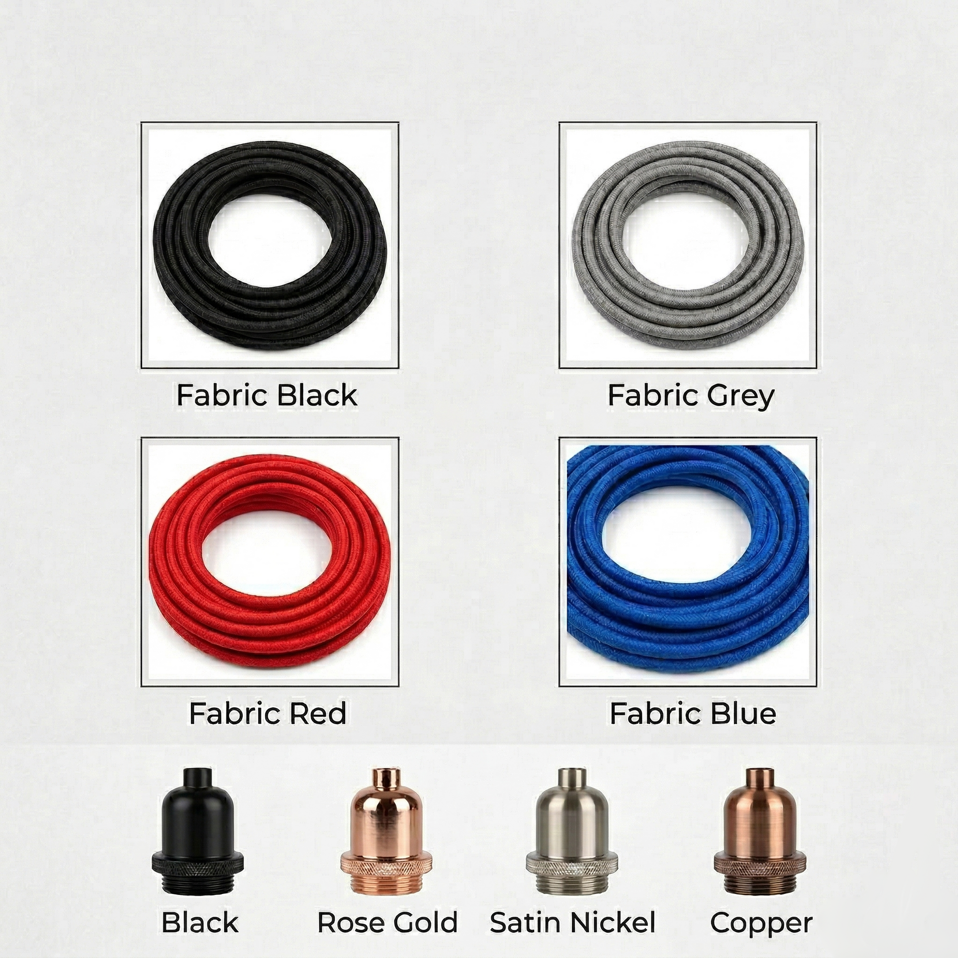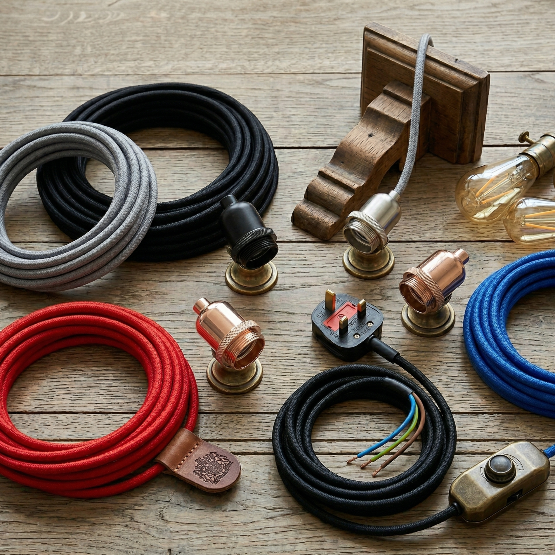 - 1 x Selected Length 3-Core Fabric Cable (with UK Plug & Dimmer)